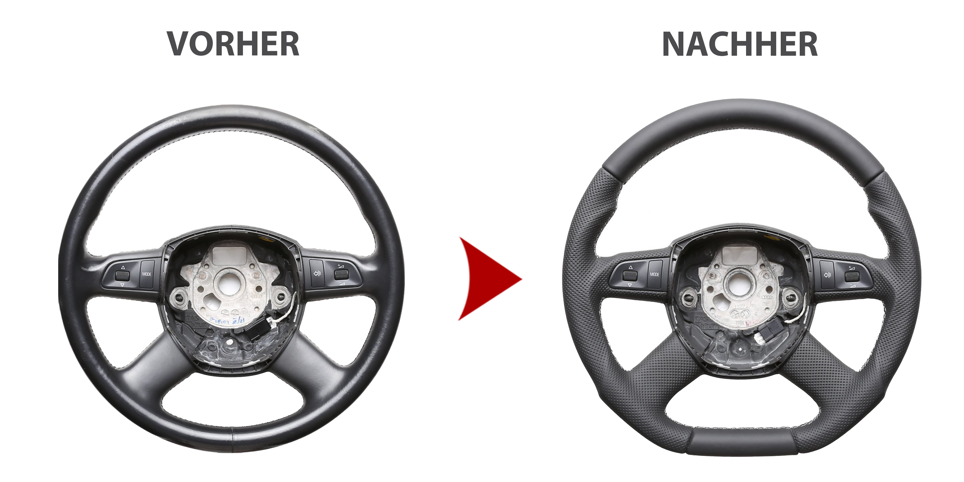 Der Austausch erfolgt ausschließlich gegen ein baugleiches Lenkradmodell. Alle Anbauteile wie Airbag, Multifunktionstasten, Blenden, Schaltwippen oder gar ein Spurhalteassistent übernehmen Sie problemlos von Ihrem Lenkrad. Diese sind nicht im Lieferumfang enthalten.