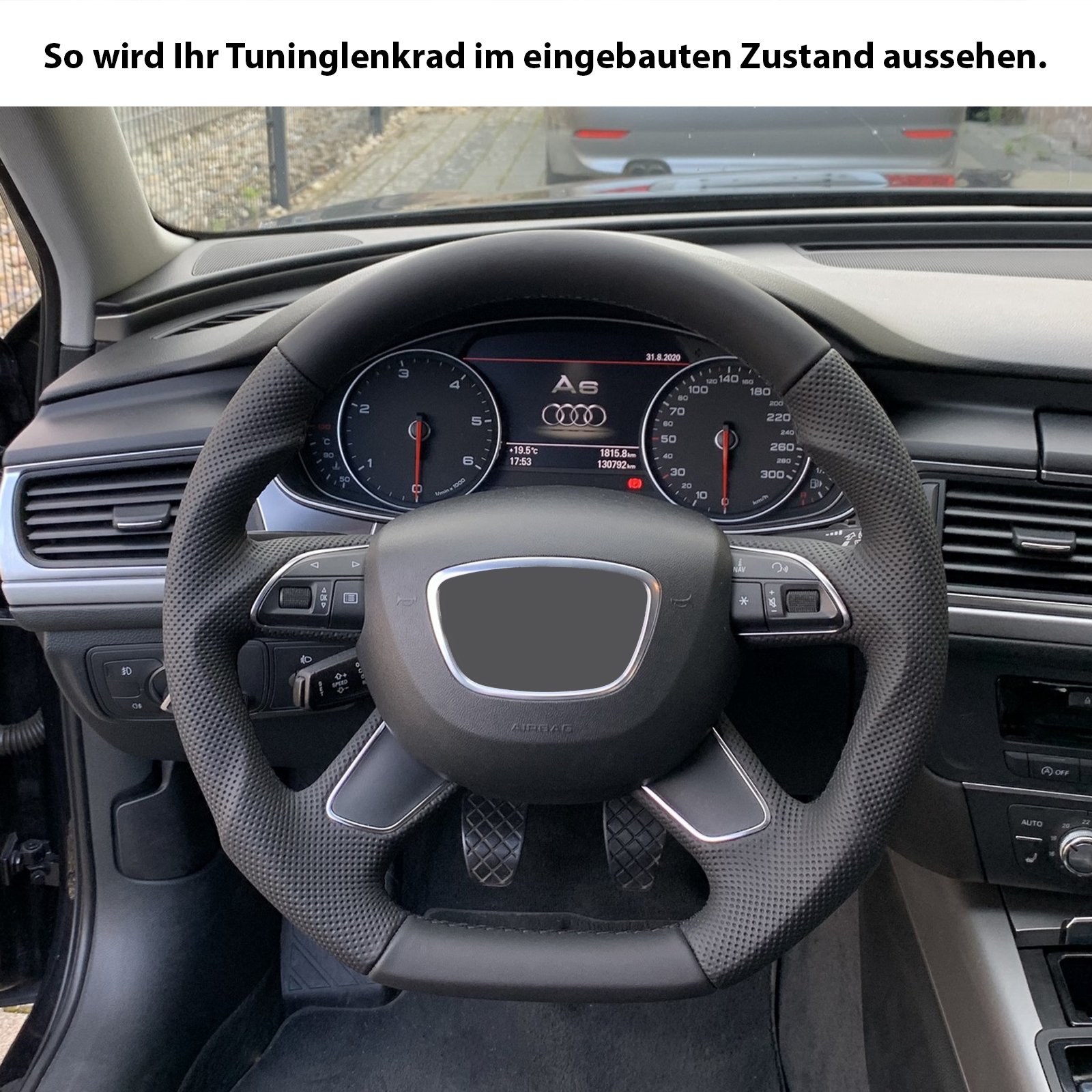 Abgeflachtes Tuninglenkrad mit ergonomischen Griffen für maximale Kontrolle. Griffumfang dicker als das Original-Lenkrad.