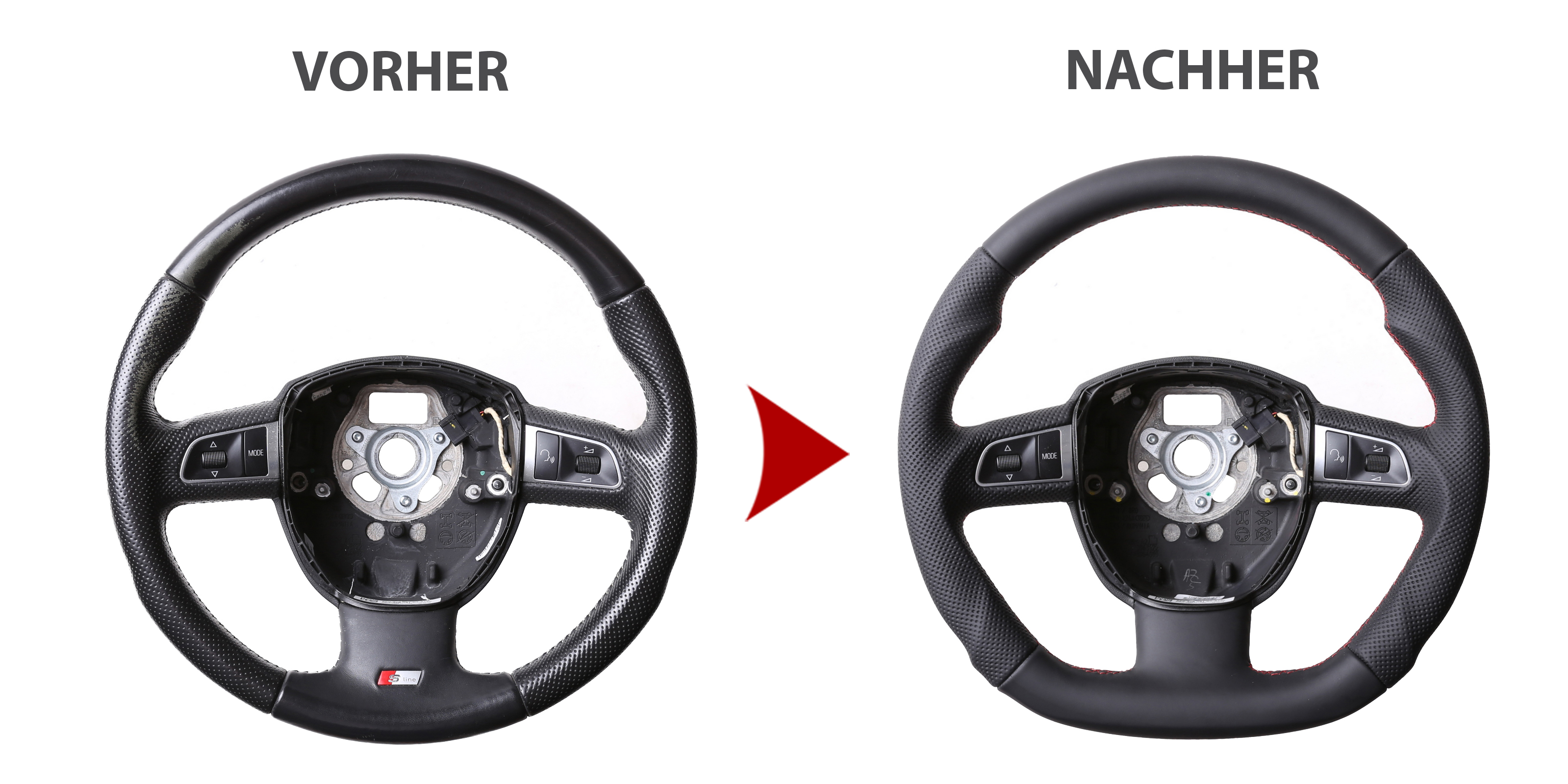 Produktinformationen "Audi Lenkrad A3 A4 A6 A8 Q5 Q7 Abgeflacht Kombibezug Naht rot"