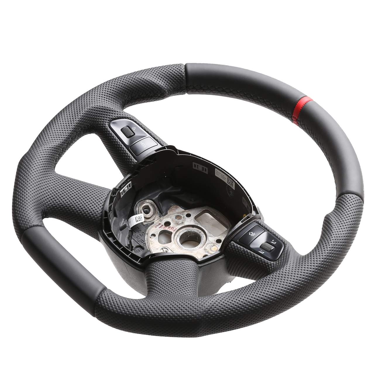 Audi Lenkrad A3 A4 A6 A8 Q5 Q7 Abgeflacht MFL 12Uhr Markierung rot Kombiebzug Naht schwarz
