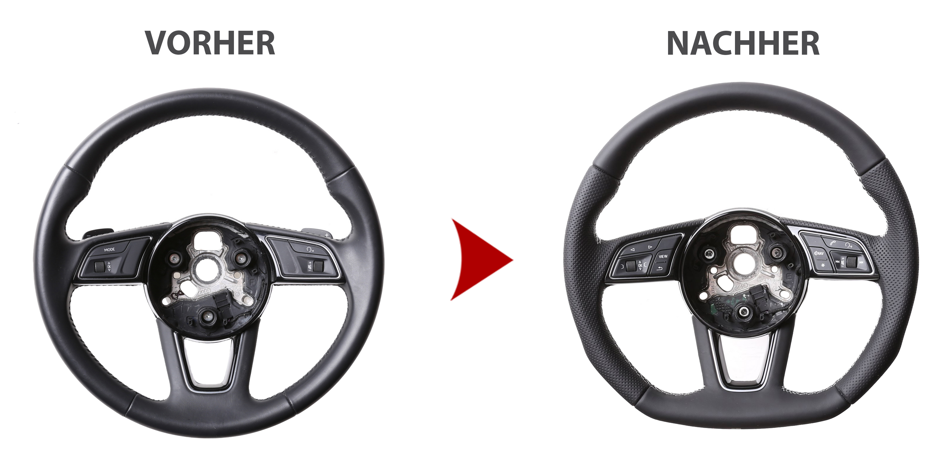 Der Austausch erfolgt ausschließlich gegen ein baugleiches Lenkradmodell. Alle Anbauteile wie Airbag, Multifunktionstasten, Blenden, Schaltwippen oder gar ein Spurhalteassistent übernehmen Sie problemlos von Ihrem Lenkrad. Diese sind nicht im Lieferumfang enthalten.