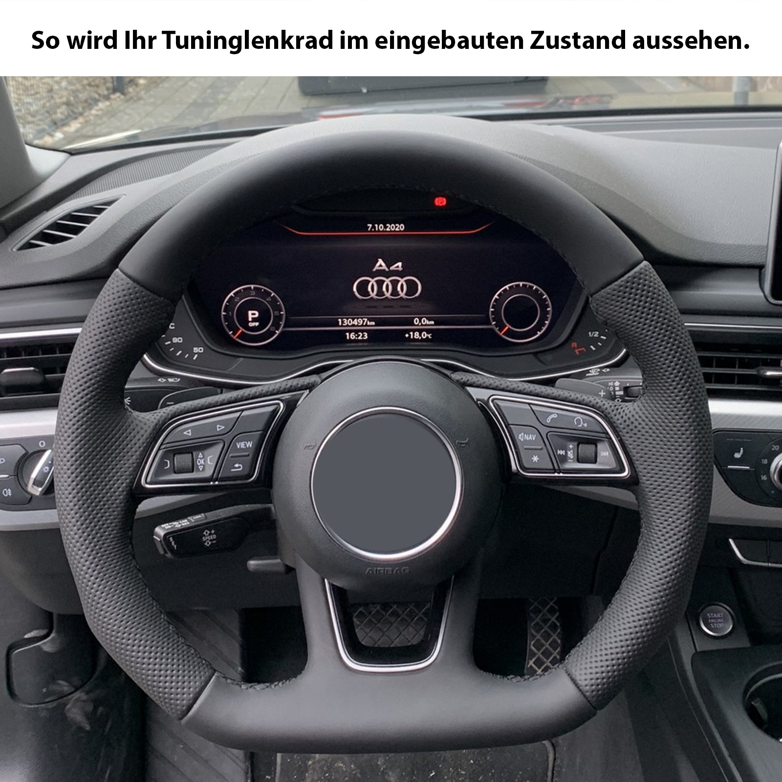 Produktinformationen "Audi Lenkrad A4 A1 S1 A3 A6 S6 A7 A8 Q3 Kombibezug Naht schwarz"