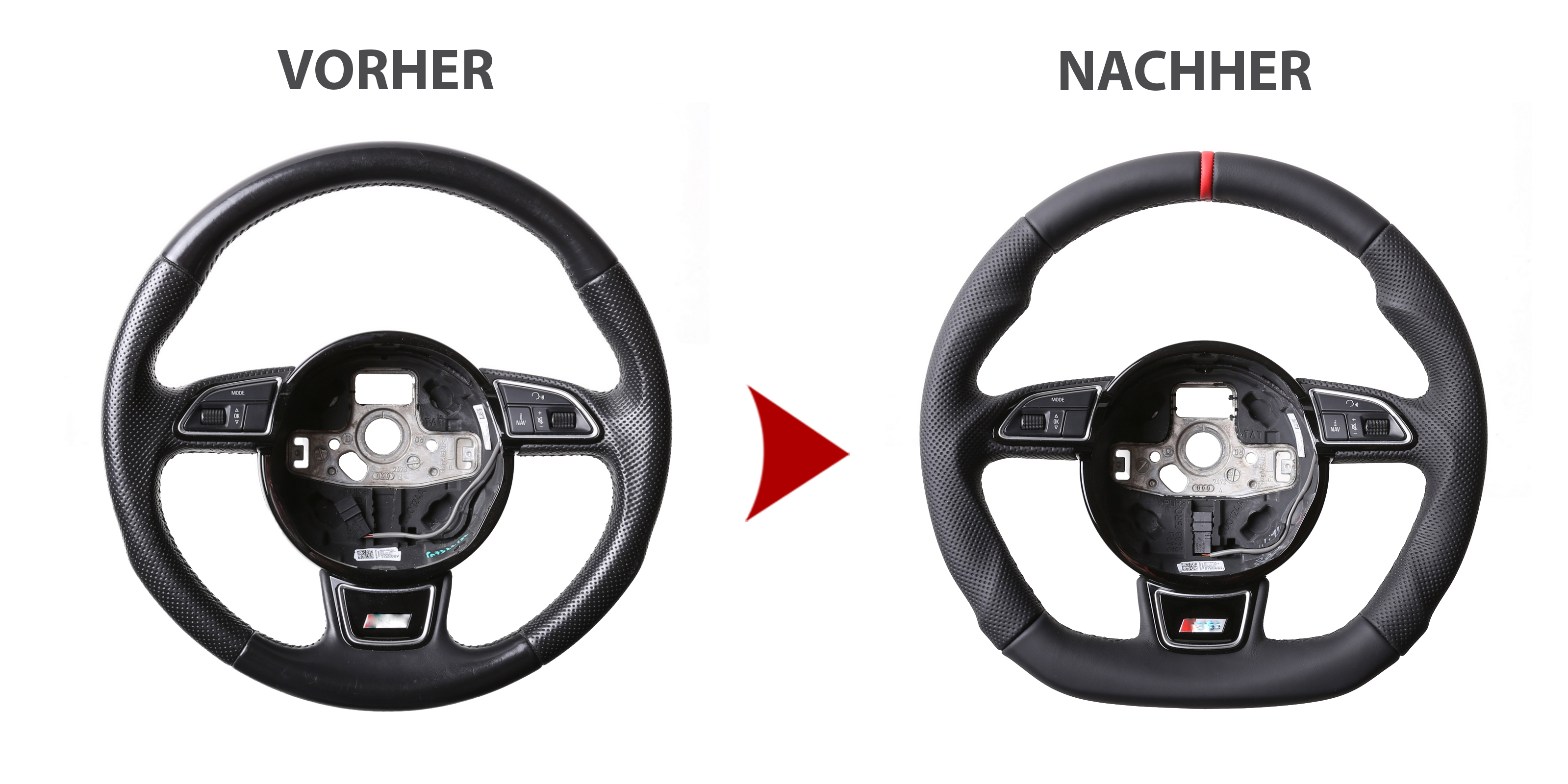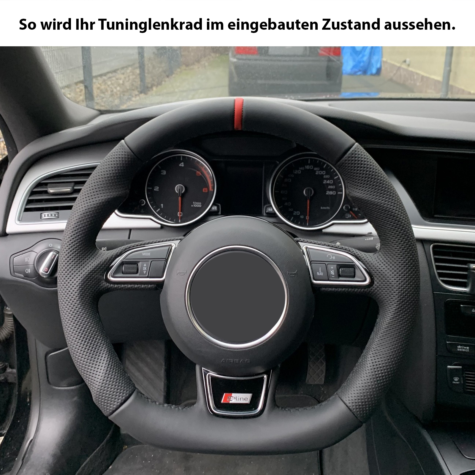 Produktinformationen "Audi Lenkrad A4 A1 S1 A5 A6 S6 A7 A8 Q3 Abgeflacht 12 Uhr Markierung rot Kombibezug Naht schwarz"
