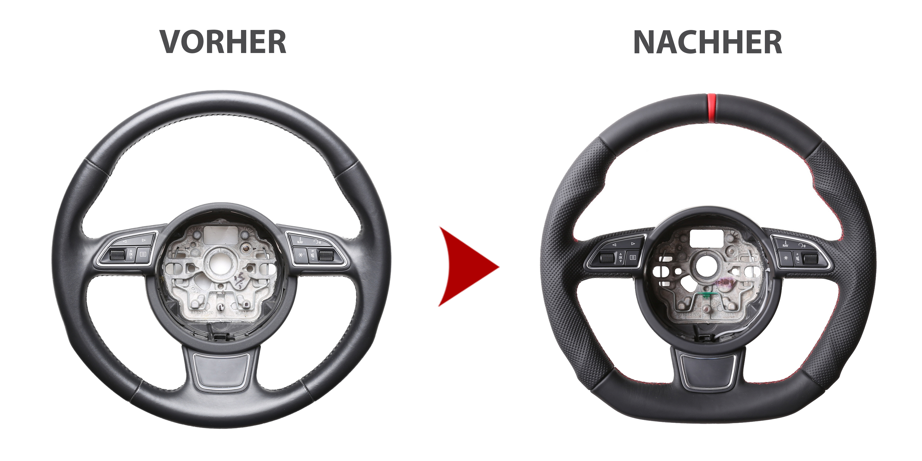 Produktinformationen "Audi Lenkrad A4 A1 S1 A5 A6 S6 A7 A8 Q3 Abgeflacht 12Uhr Markierung rot Kombibezug Naht rot"