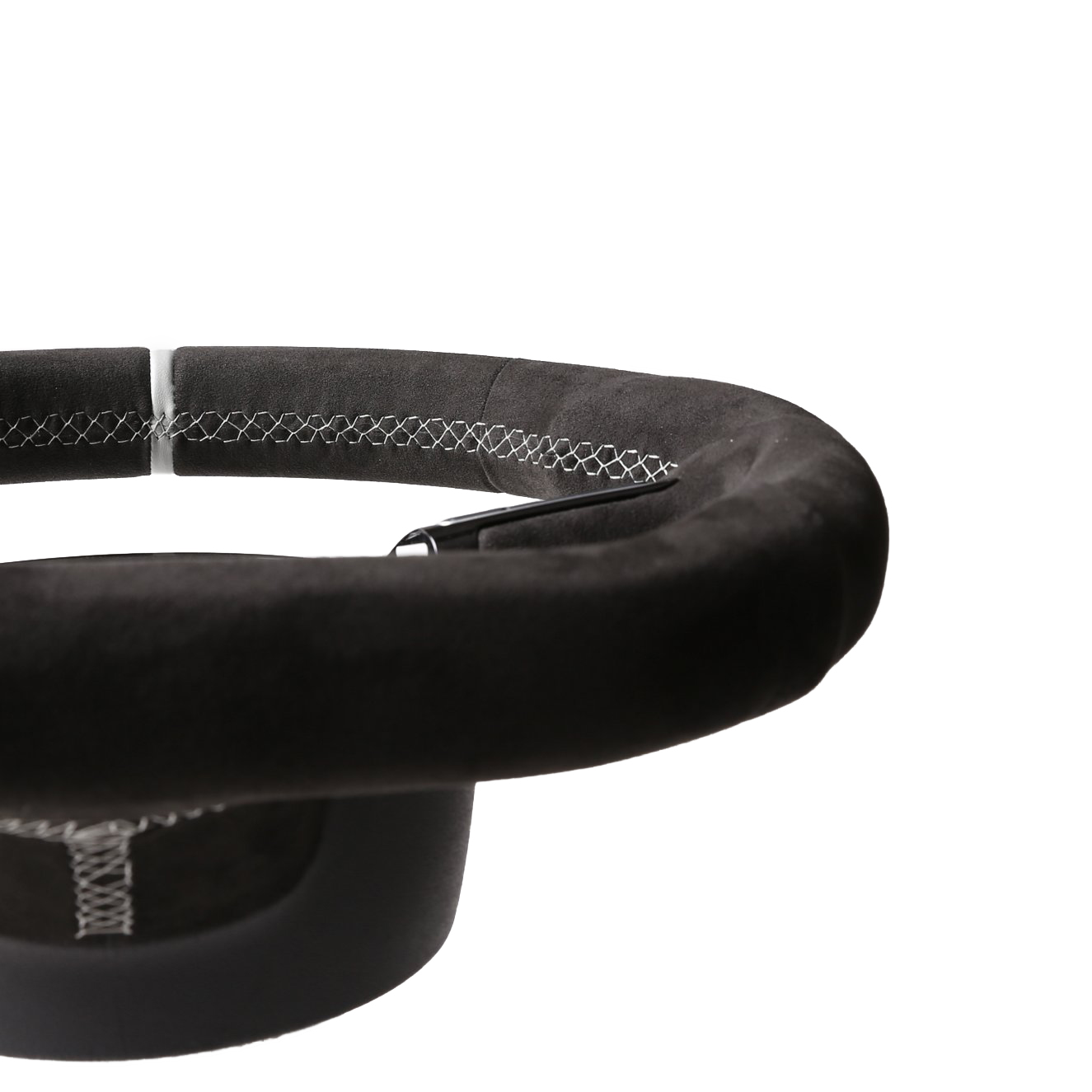 Originalfarbe schwarz, ein Bezug aus Alcantara Leder, 12 Uhr Markierung silber, Naht silber