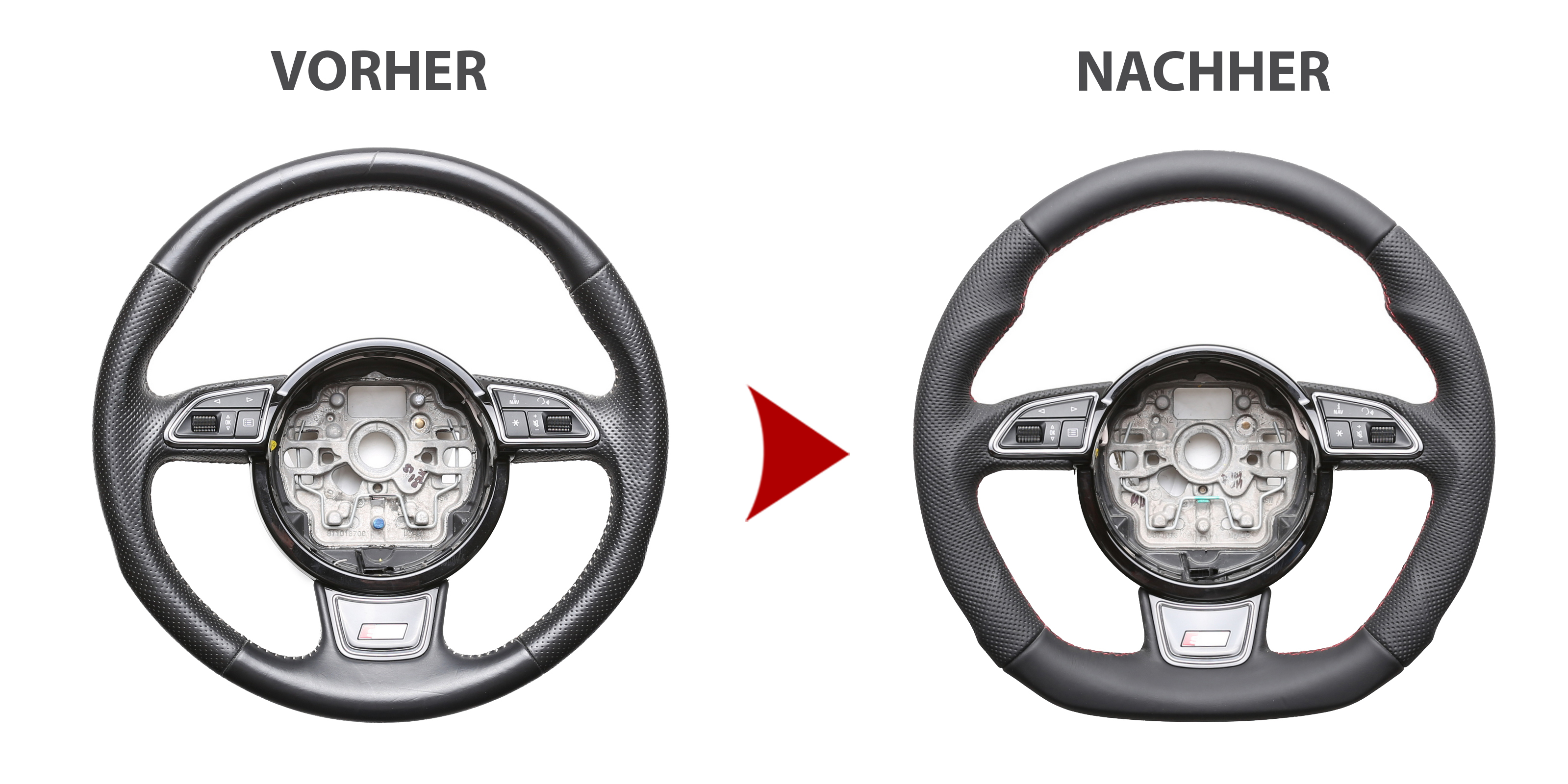 Produktinformationen "Audi Lenkrad A4 A1 S1 A6 S6 A7 A8 Q3 Abgeflacht Kombibezug Naht rot"