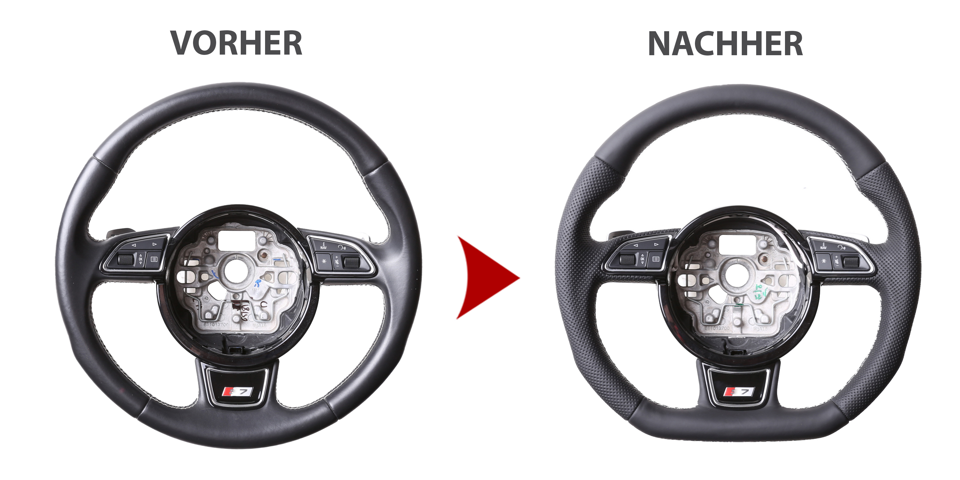Produktinformationen "Audi Lenkrad A4 A1 S1 A6 S6 A7 A8 Q3 Abgeflacht Kombibezug Naht silber"