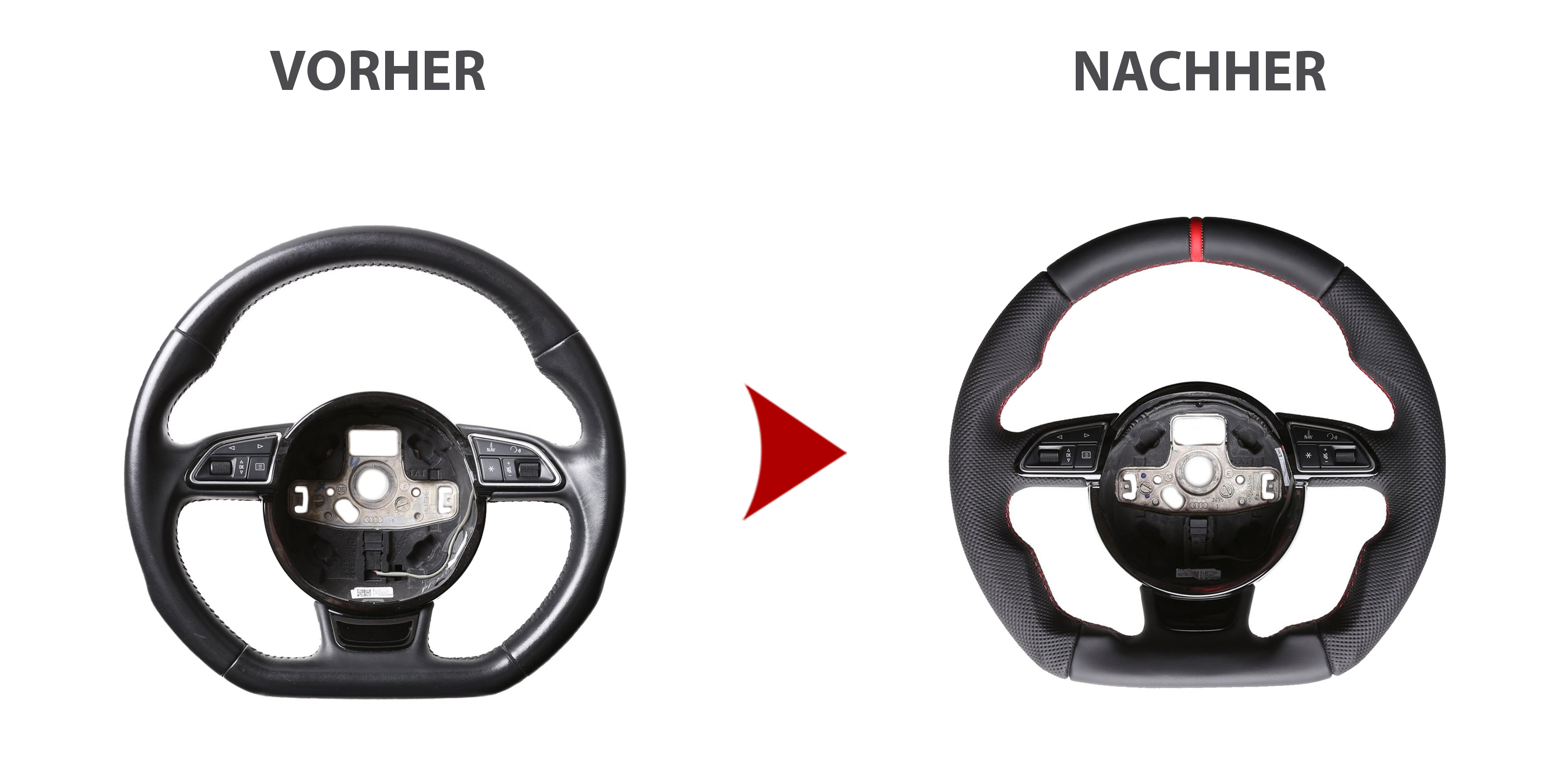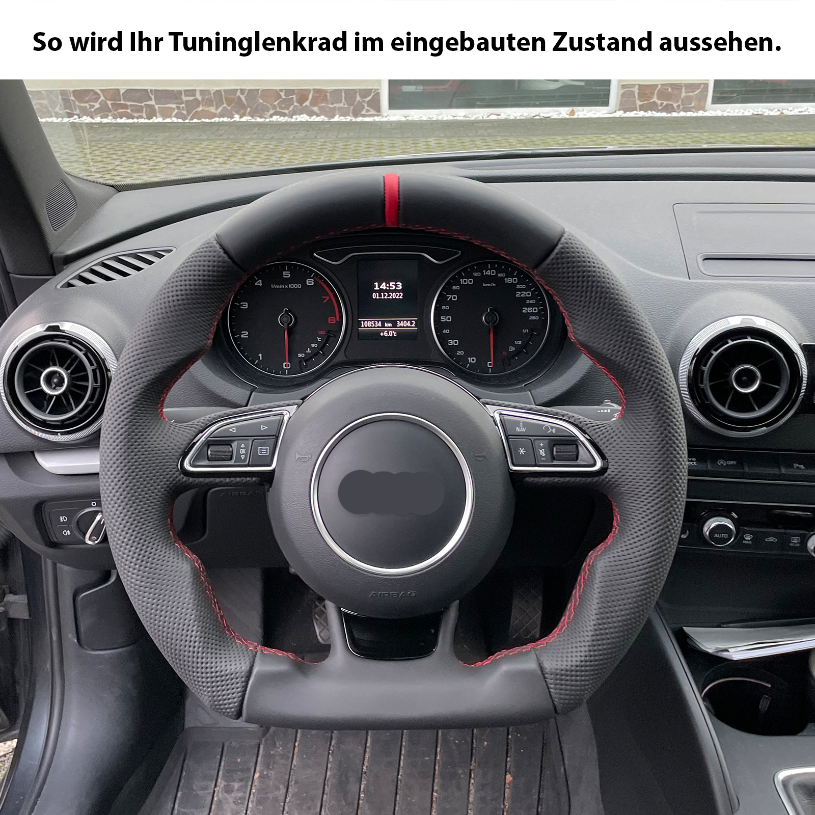 Produktinformationen "Audi Lenkrad A4 A1 S1 A6 S6 A7 A8 Q3 Abgeflacht NEU Kombibezug 12 Uhr Markierung rot Naht rot"