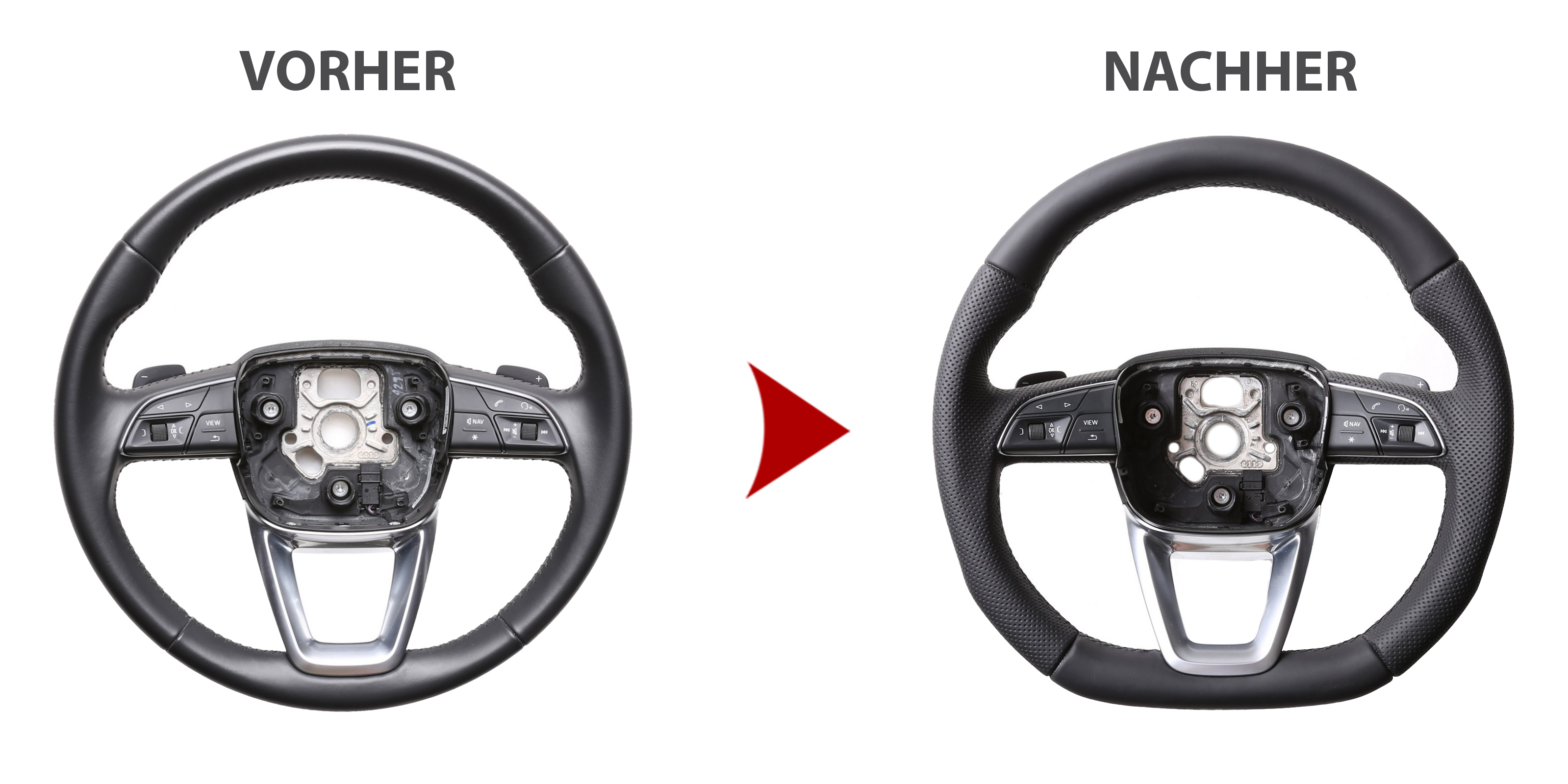 Der Austausch erfolgt ausschließlich gegen ein baugleiches Lenkradmodell. Alle Anbauteile wie Airbag, Multifunktionstasten, Blenden, Schaltwippen oder gar ein Spurhalteassistent übernehmen Sie problemlos von Ihrem Lenkrad. Diese sind nicht im Lieferumfang enthalten.