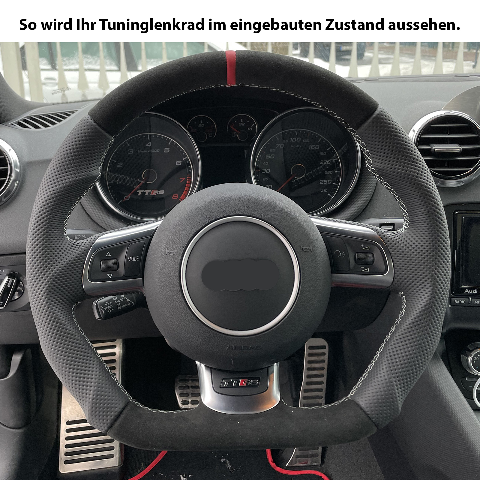 Produktinformationen "Audi Lenkrad TT TTS TTRS 8J A3 A8 S3 8P R8 RS5 RS6 Abgeflacht Alcantara 12 Uhr Markierung rot"