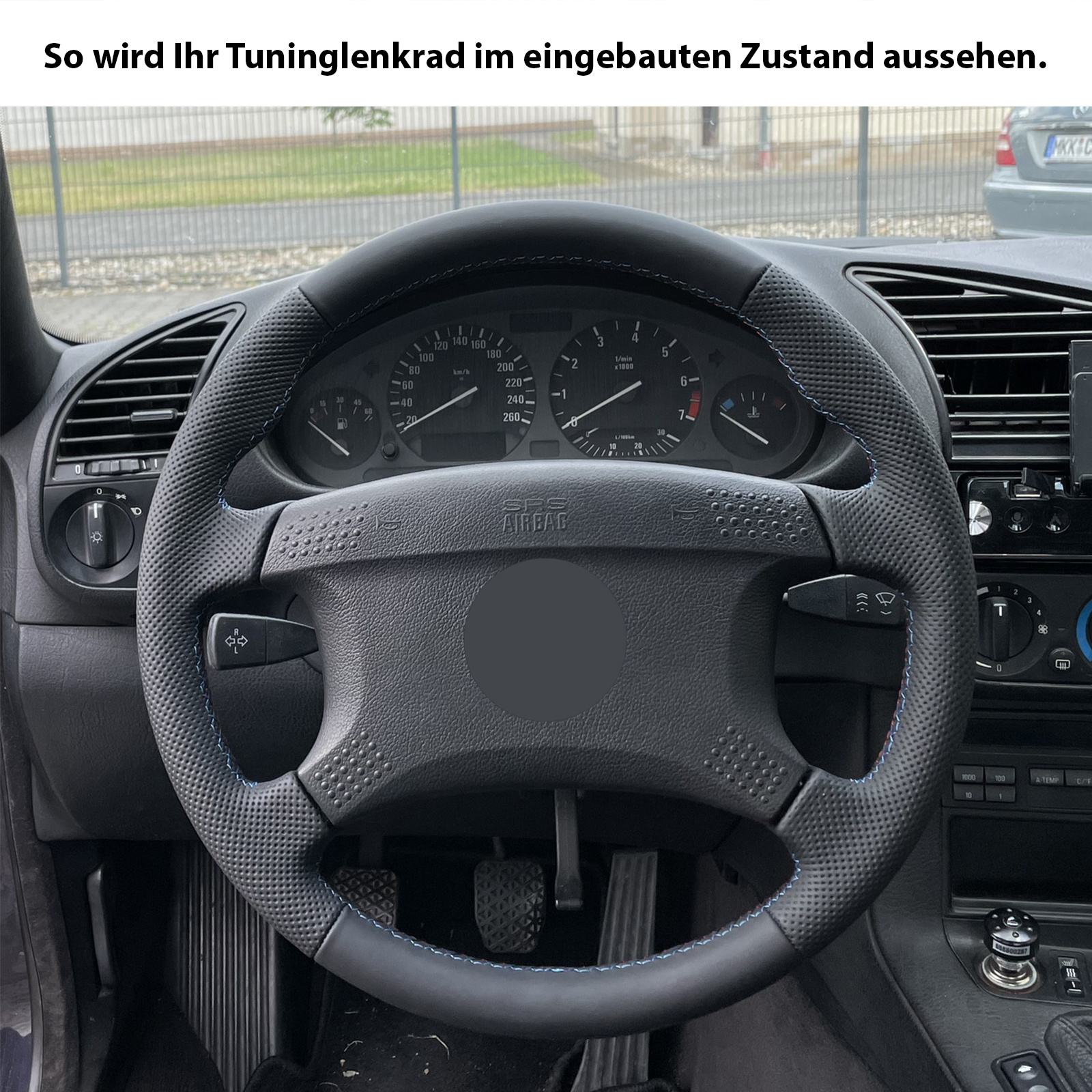Produktinformationen "BMW Lenkrad E31 E32 E34 E36 bis Bj 1995 Daumenauflagen Kombibezug M-Naht"