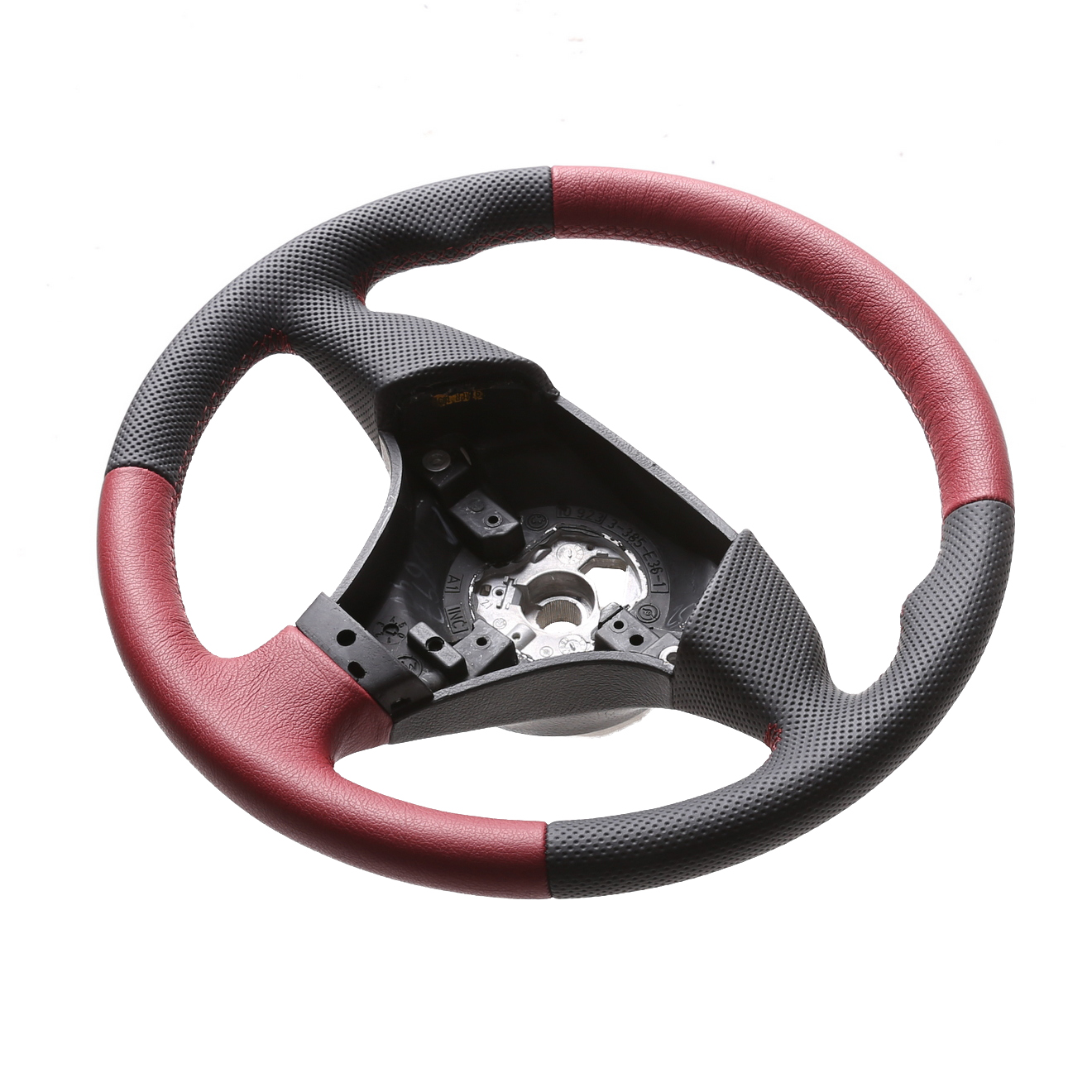 Produktinformationen "BMW Lenkrad E31 E36 E39 E46 Z3 Sport Daumenauflagen Kombibezug genarbt rot Naht rot"