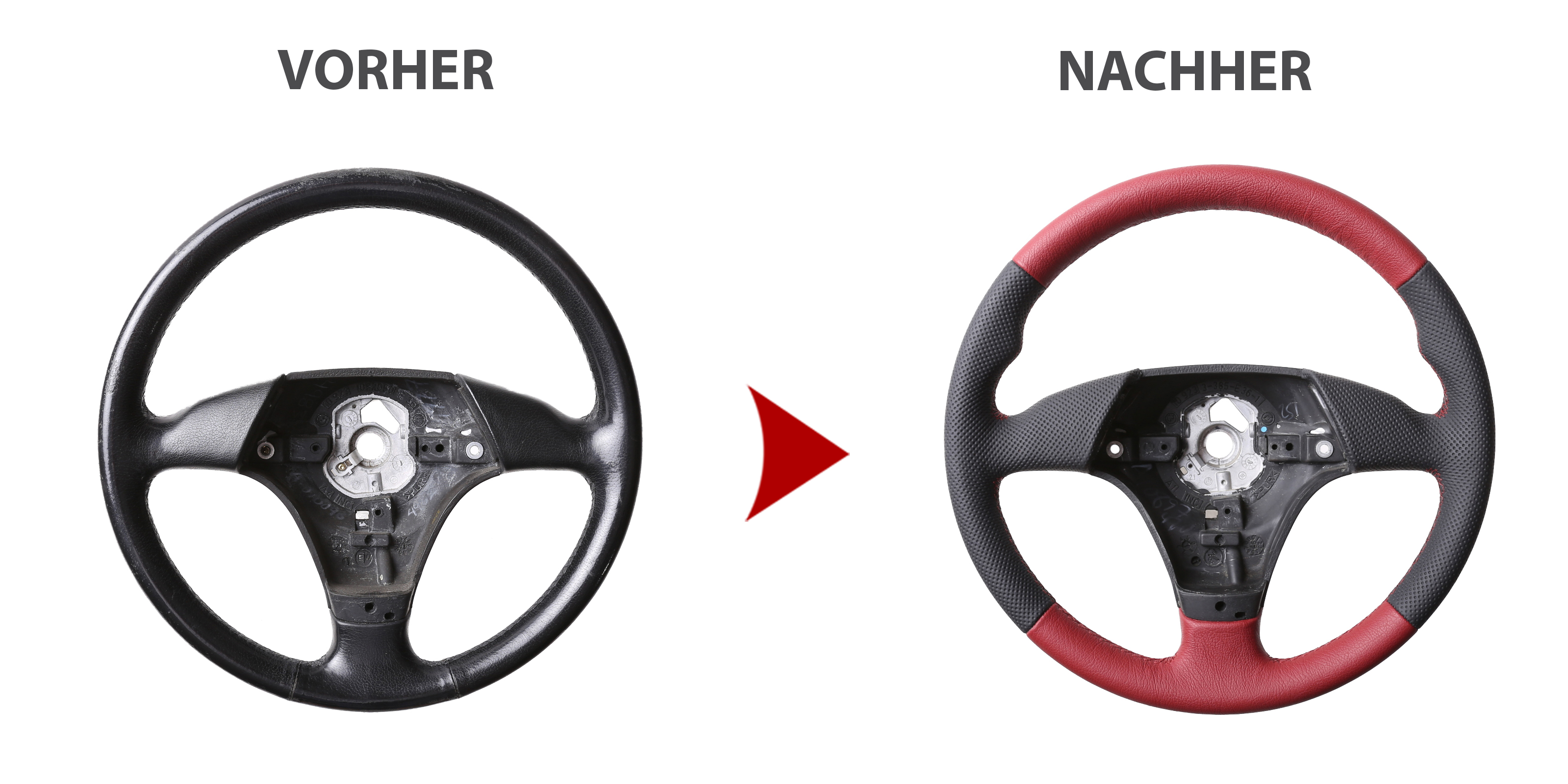 BMW Lenkrad E31 E36 E39 E46 Z3 Sport Daumenauflagen Kombibezug genarbt rot Naht rot