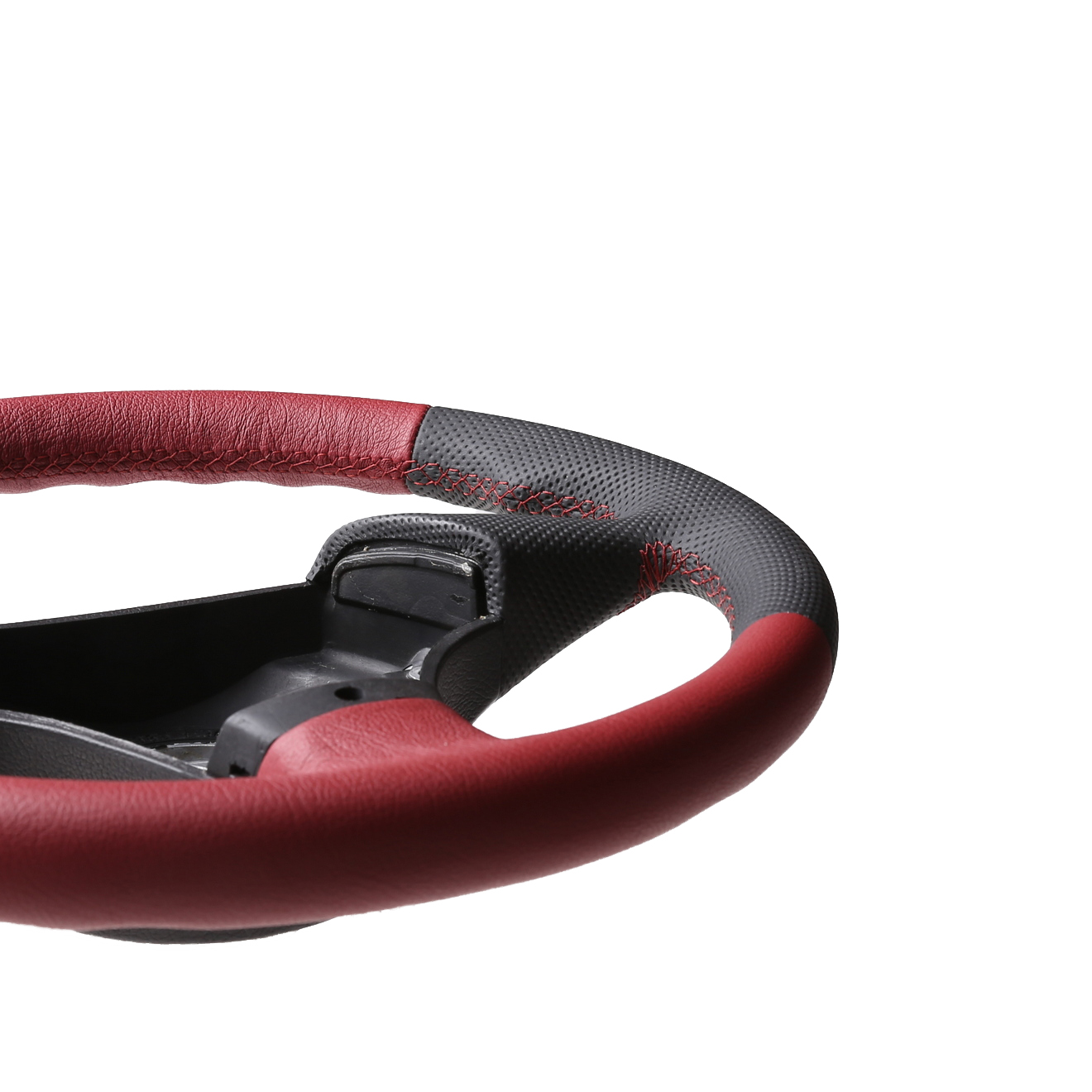 Originalfarbe schwarz, Bicolor rot/schwarz aus genarbt und perforiertem Leder, Naht rot
