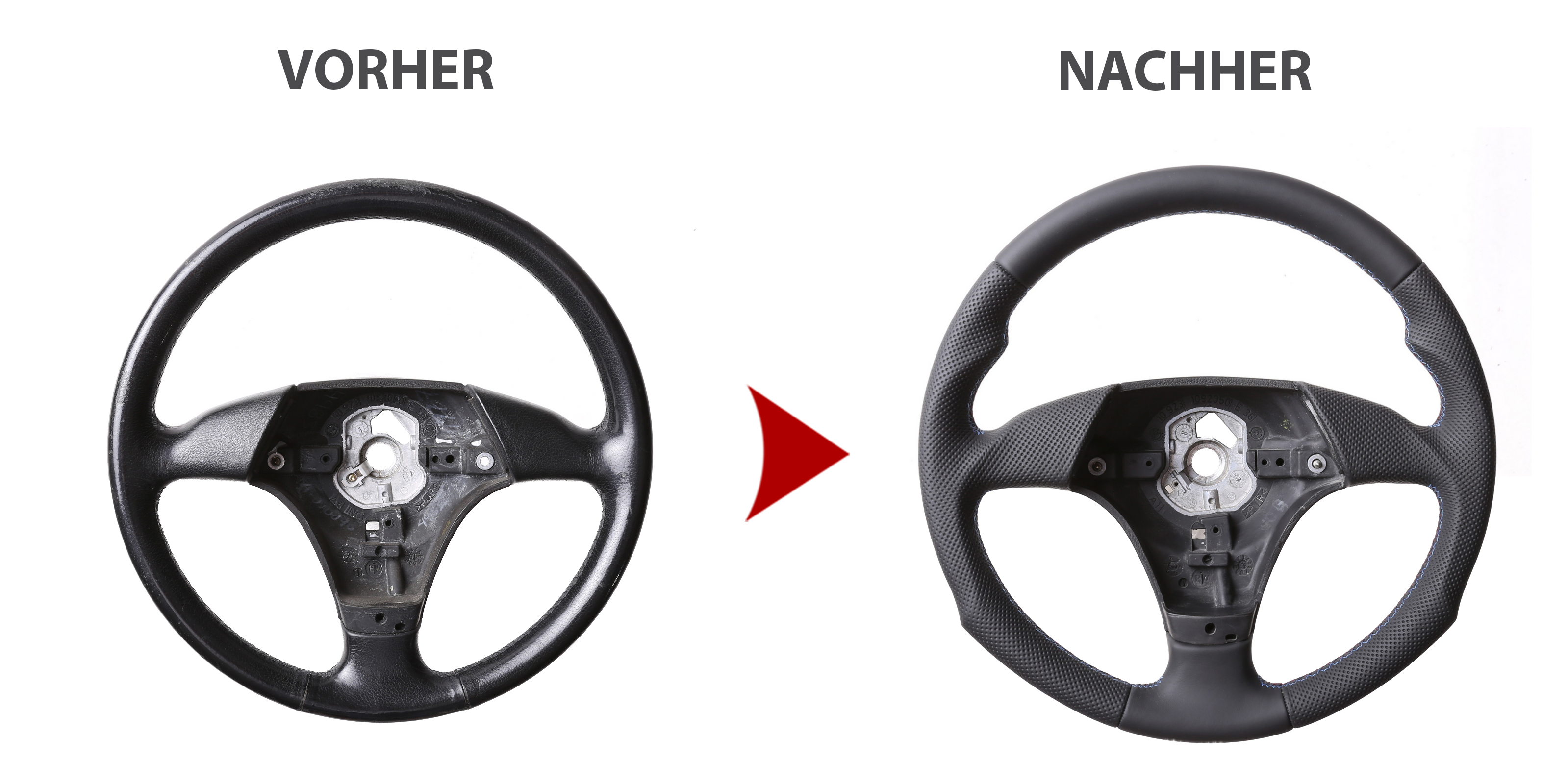 Des Weiteren bieten wir auch den Neubezug Ihres Lenkrades nach Ihren individuellen Vorstellungen bei uns vor Ort an. Sollte es Ihr Lenkradmodell ausnahmsweise nicht in unserem Sortiment geben, dann können wir Ihnen Ihr Lenkrad ausbauen, innerhalb von 4-5 Stunden den Wunschbezug anfertigen und anschließend können Sie wieder nach fachgerechtem Einbau durch uns ohne lange Versandwartezeiten und teure Werkstattbesuche mit Ihrem neu bezogenen Lederlenkrad nach Hause fahren!