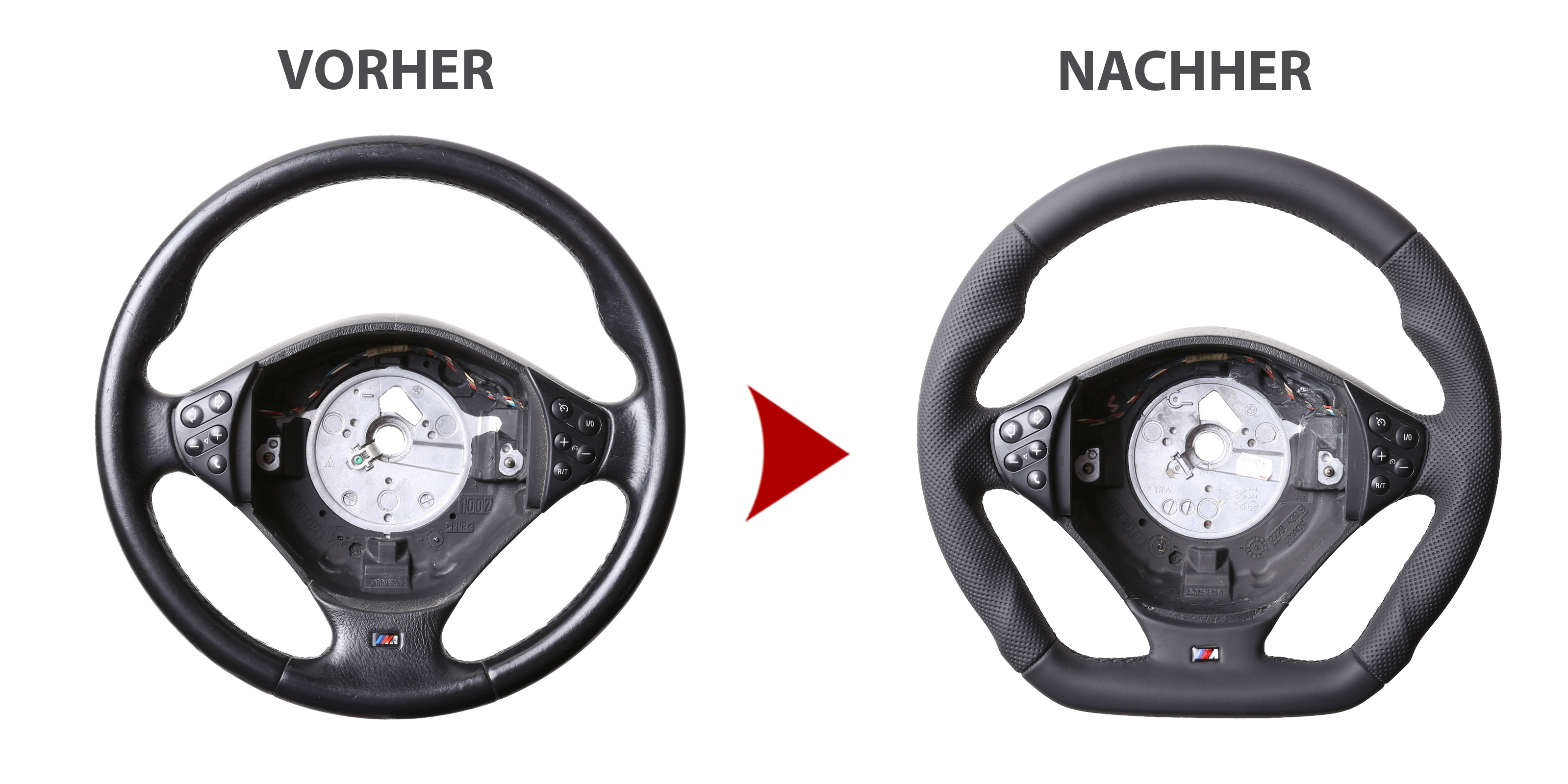 Des Weiteren bieten wir auch den Neubezug Ihres Lenkrades nach Ihren individuellen Vorstellungen bei uns vor Ort an. Sollte es Ihr Lenkradmodell ausnahmsweise nicht in unserem Sortiment geben, dann können wir Ihnen Ihr Lenkrad ausbauen, innerhalb von 4-5 Stunden den Wunschbezug anfertigen und anschließend können Sie wieder nach fachgerechtem Einbau durch uns ohne lange Versandwartezeiten und teure Werkstattbesuche mit Ihrem neu bezogenen Lederlenkrad nach Hause fahren!