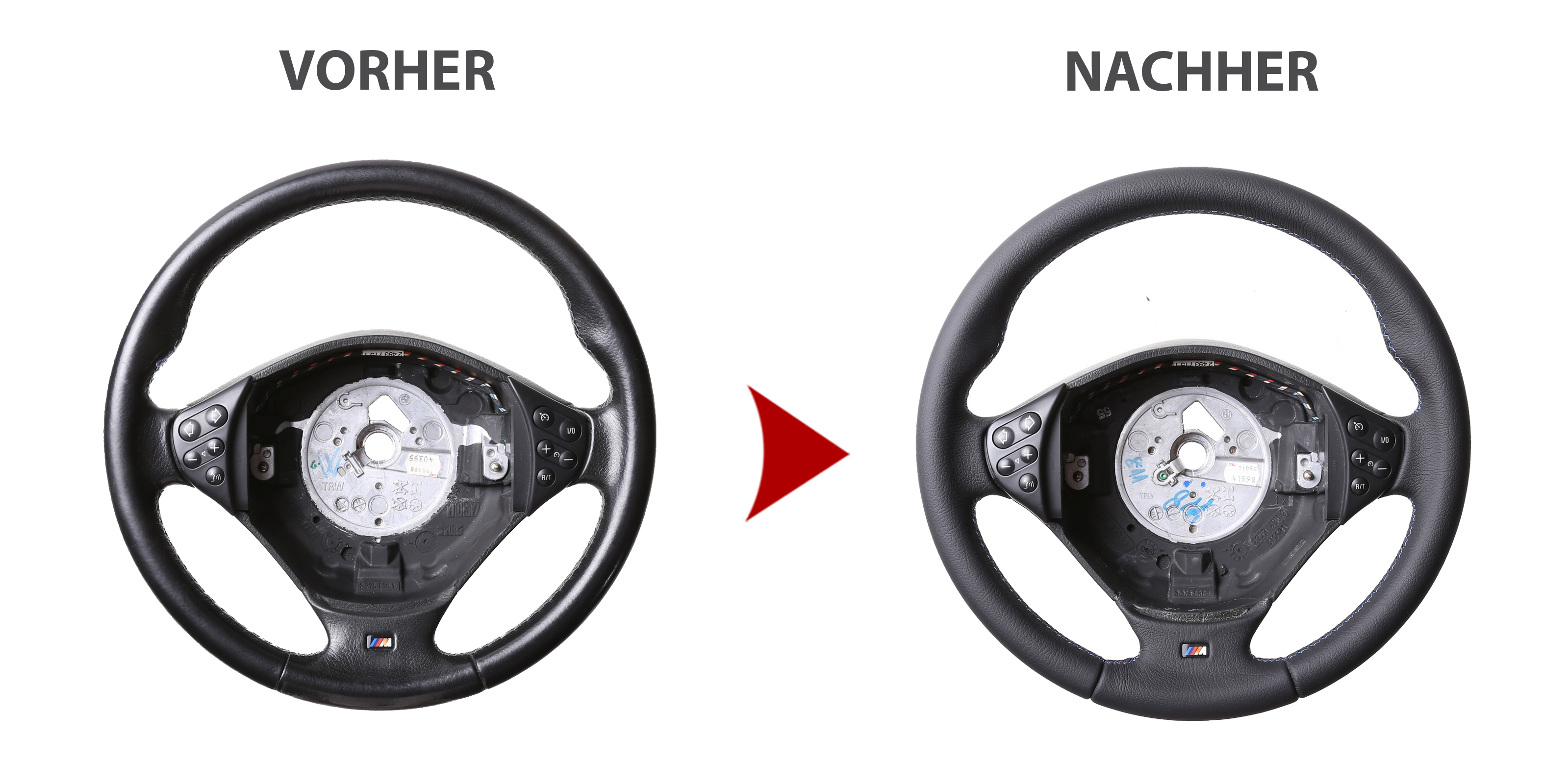 Des Weiteren bieten wir auch den Neubezug Ihres Lenkrades nach Ihren individuellen Vorstellungen bei uns vor Ort an. Sollte es Ihr Lenkradmodell ausnahmsweise nicht in unserem Sortiment geben, dann können wir Ihnen Ihr Lenkrad ausbauen, innerhalb von 4-5 Stunden den Wunschbezug anfertigen und anschließend können Sie wieder nach fachgerechtem Einbau durch uns ohne lange Versandwartezeiten und teure Werkstattbesuche mit Ihrem neu bezogenen Lederlenkrad nach Hause fahren!
