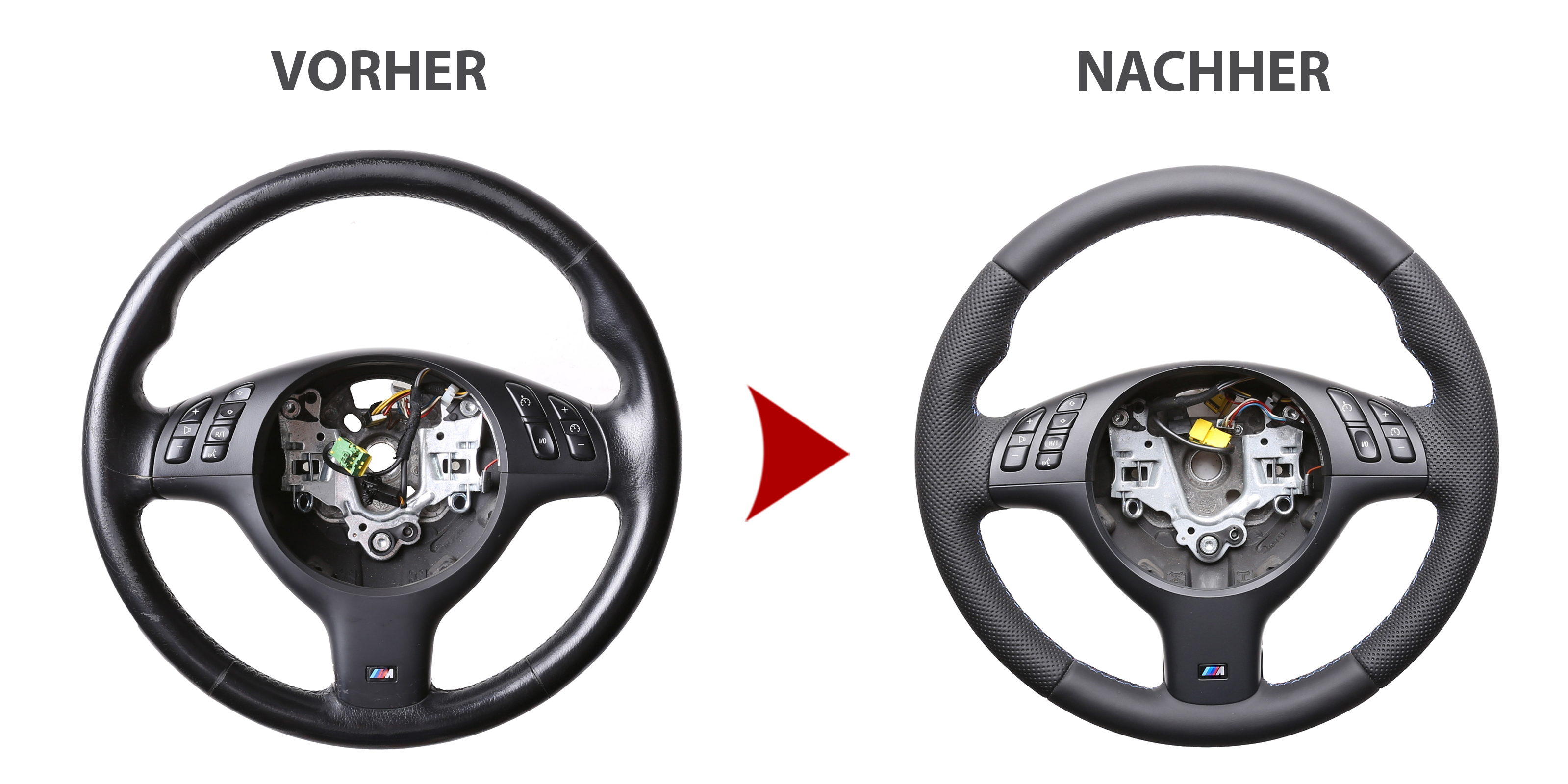 Sollte Ihr Lenkrad deutliche Defekte wie Risse oder Löcher am Kranz aufweisen, oder auch die alte Lederschicht Ihres Lenkrads entfernt und nicht mehr erhalten werden können, muss nicht nur die Lederschicht erneuert werden, sondern auch die darunterliegende Polsterung. In diesem Fall müssen Sie mit einem Aufpreis von 30€ rechnen.