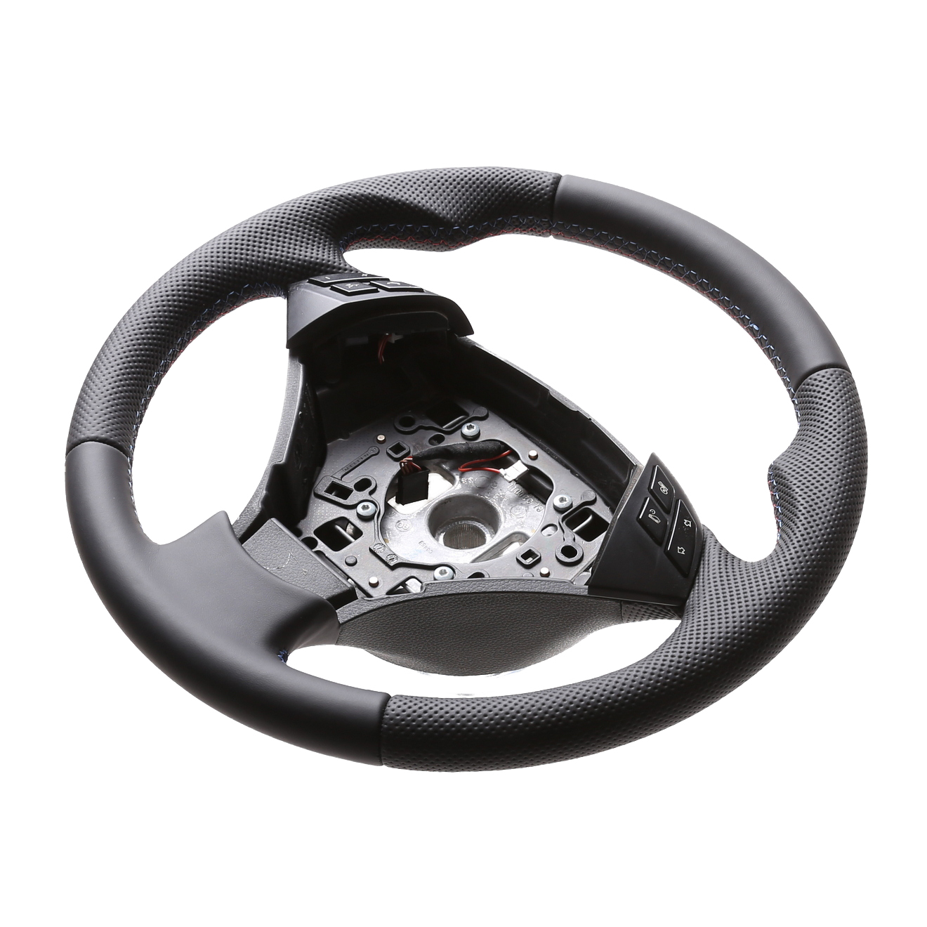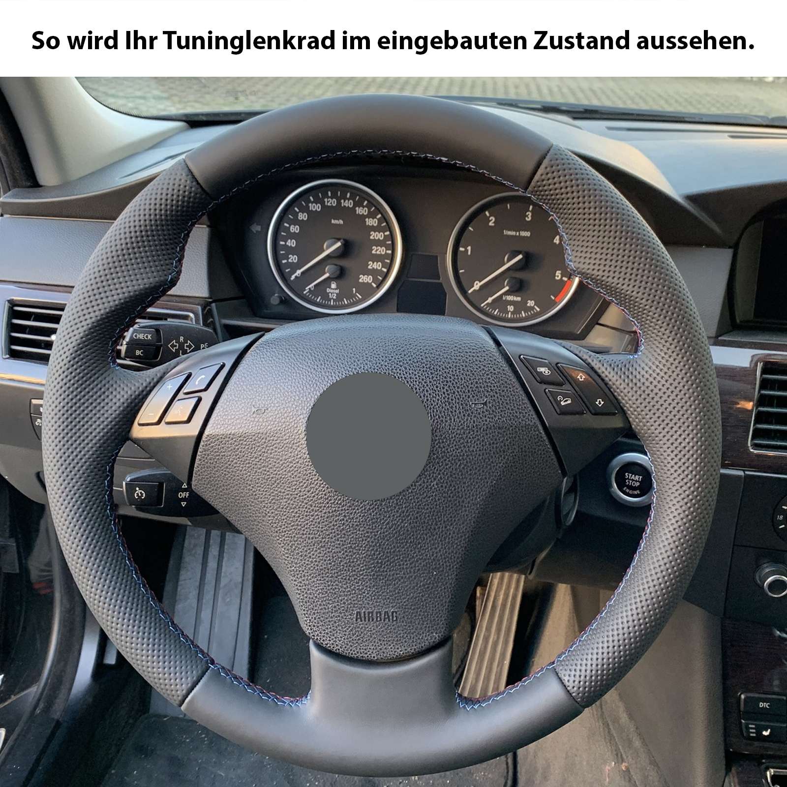 Griffumfang dicker als das Original Lenkrad, Daumenauflagen. Passt für BMW E60, E61 mit eckigem Airbag, ein Lenkrad mit rundem Airbag finden Sie in unserem Shop