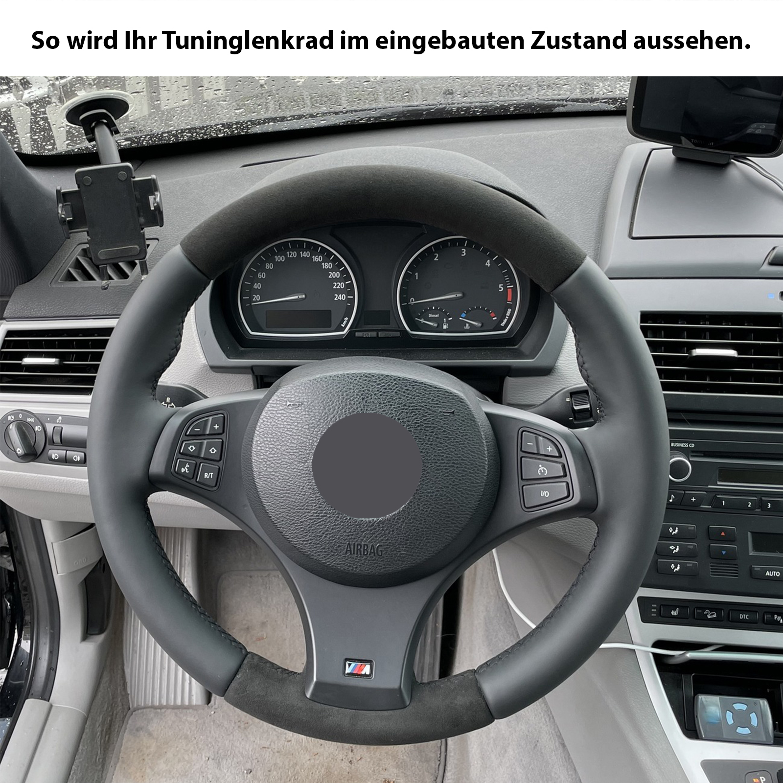 Produktinformationen "BMW Lenkrad E83 X3 E53 X5 M-Sport Kombibezug Alcantara Naht schwarz"