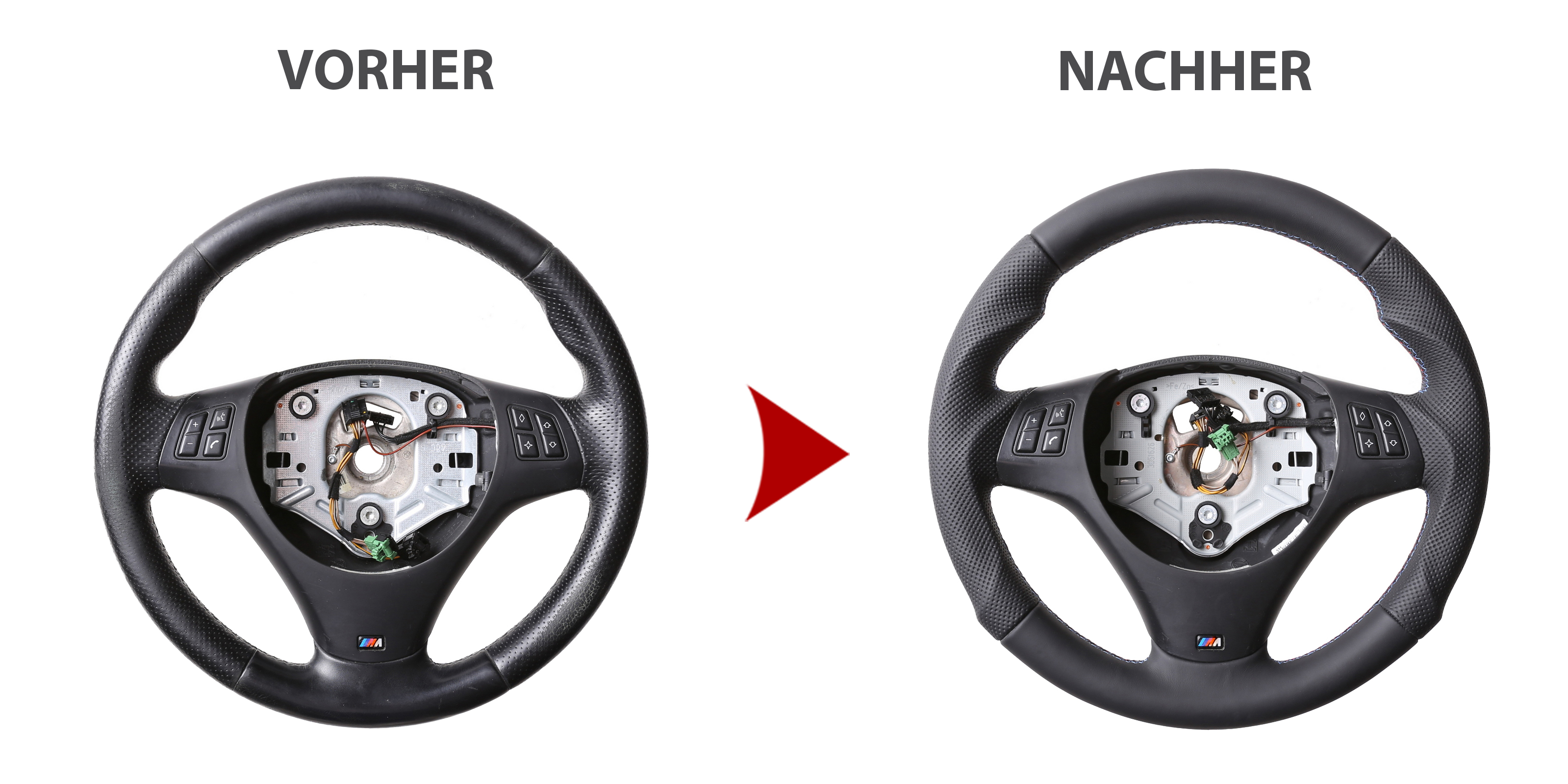 Des Weiteren bieten wir auch den Neubezug Ihres Lenkrades nach Ihren individuellen Vorstellungen bei uns vor Ort an. Sollte es Ihr Lenkradmodell ausnahmsweise nicht in unserem Sortiment geben, dann können wir Ihnen Ihr Lenkrad ausbauen, innerhalb von 4-5 Stunden den Wunschbezug anfertigen und anschließend können Sie wieder nach fachgerechtem Einbau durch uns ohne lange Versandwartezeiten und teure Werkstattbesuche mit Ihrem neu bezogenen Lederlenkrad nach Hause fahren!