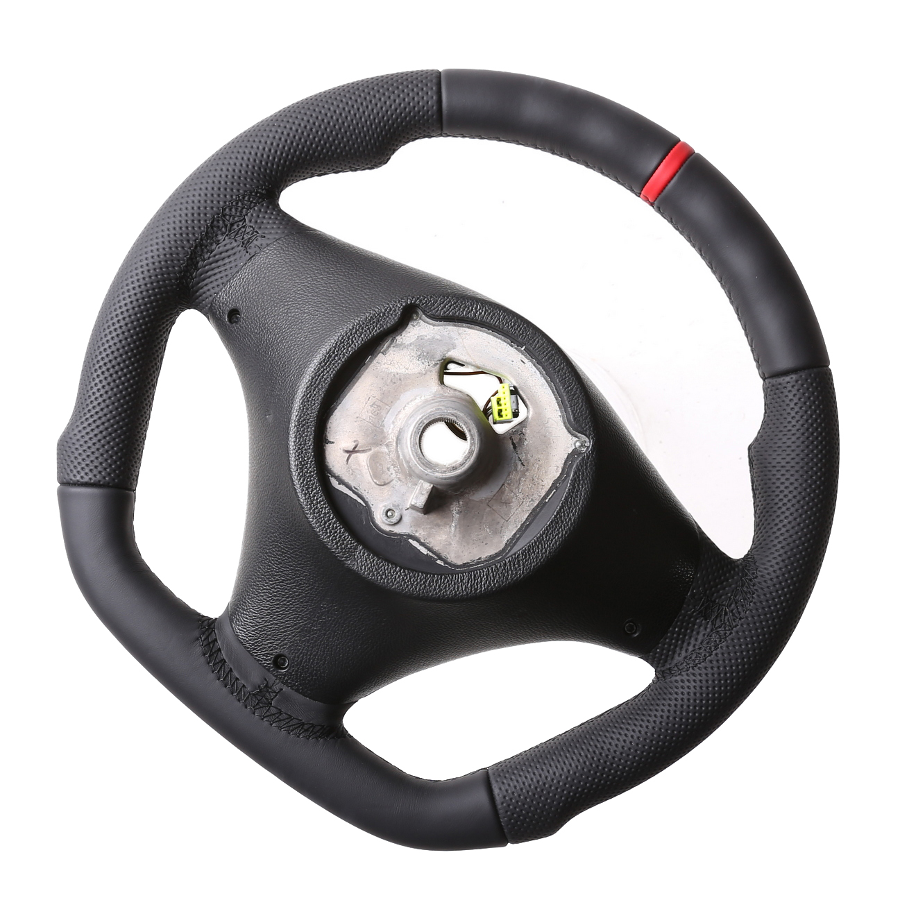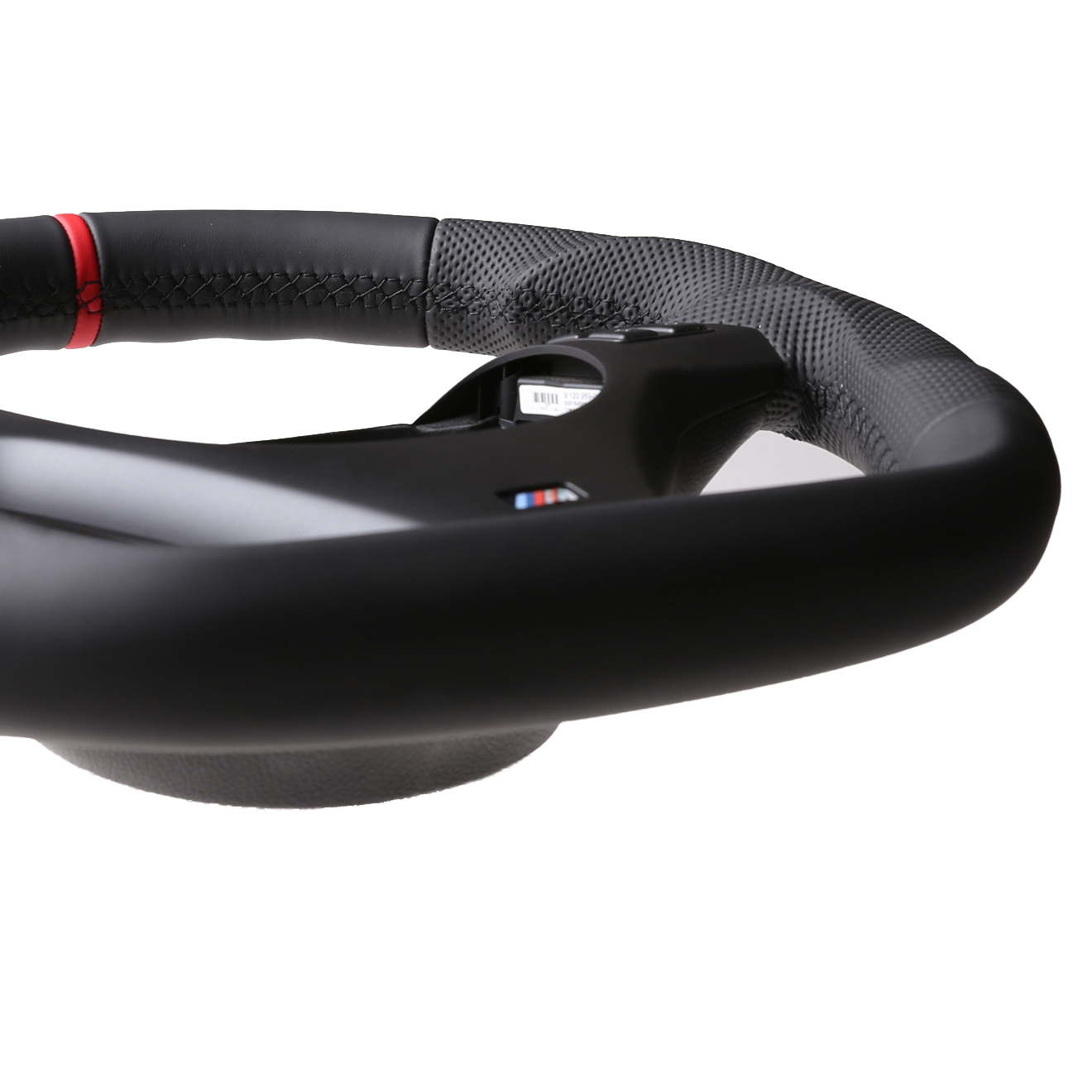 Produktinformationen "BMW Lenkrad E84 X1 E87 E88 E90 E91 M-Sport Abgeflacht Kombibezug 12 Uhr Markierung rot Naht schwarz"