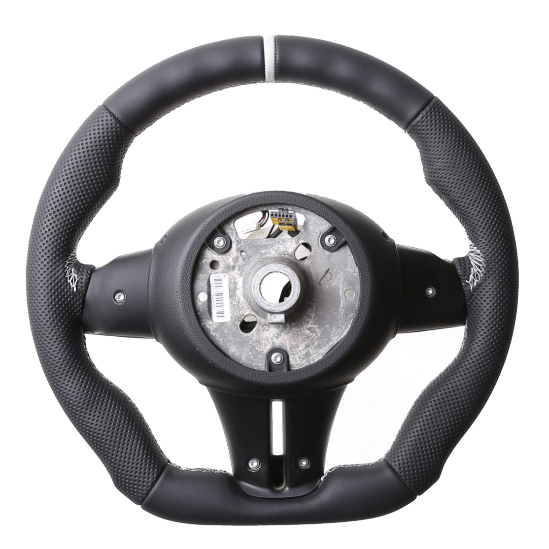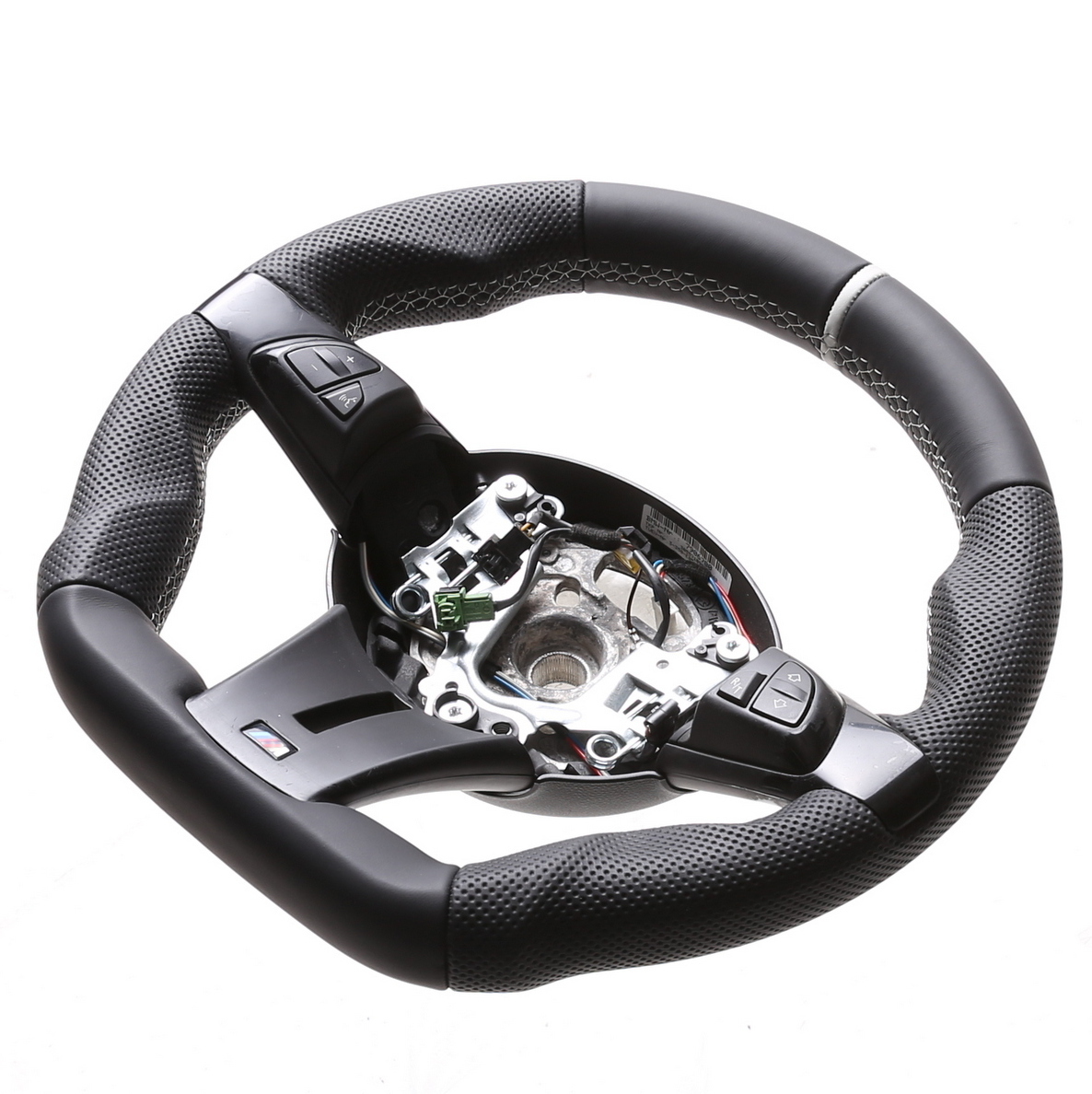 Originalfarbe schwarz, ein Kombibezug aus BMW Nappa und perforiertem Leder, 12 Uhr Markierung silber, Naht silber