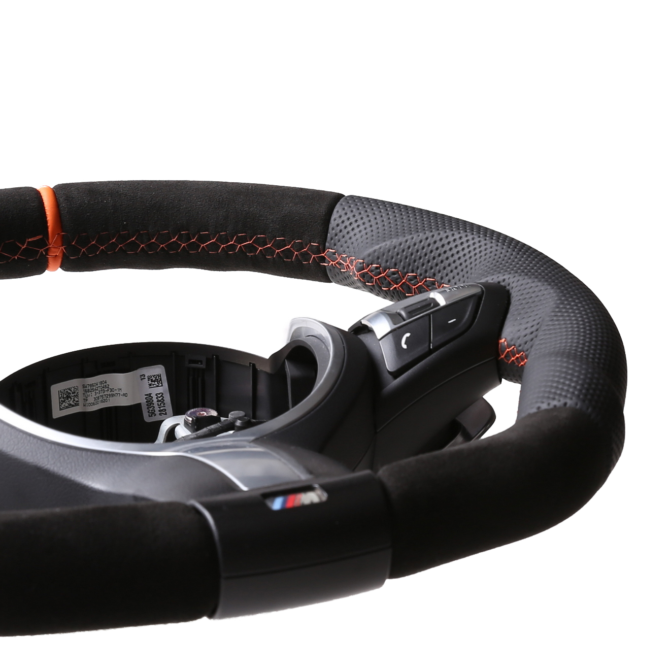 Produktinformationen "BMW Lenkrad F01 F02 F07 F10 F11 F12 F13 Abgeflacht Kombibezug Alcantara 12Uhr Markierung orange"