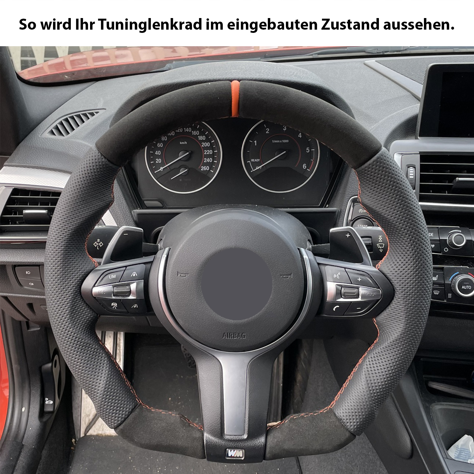 BMW Lenkrad F01 F02 F07 F10 F11 F12 F13 Abgeflacht Kombibezug Alcantara 12Uhr Markierung orange