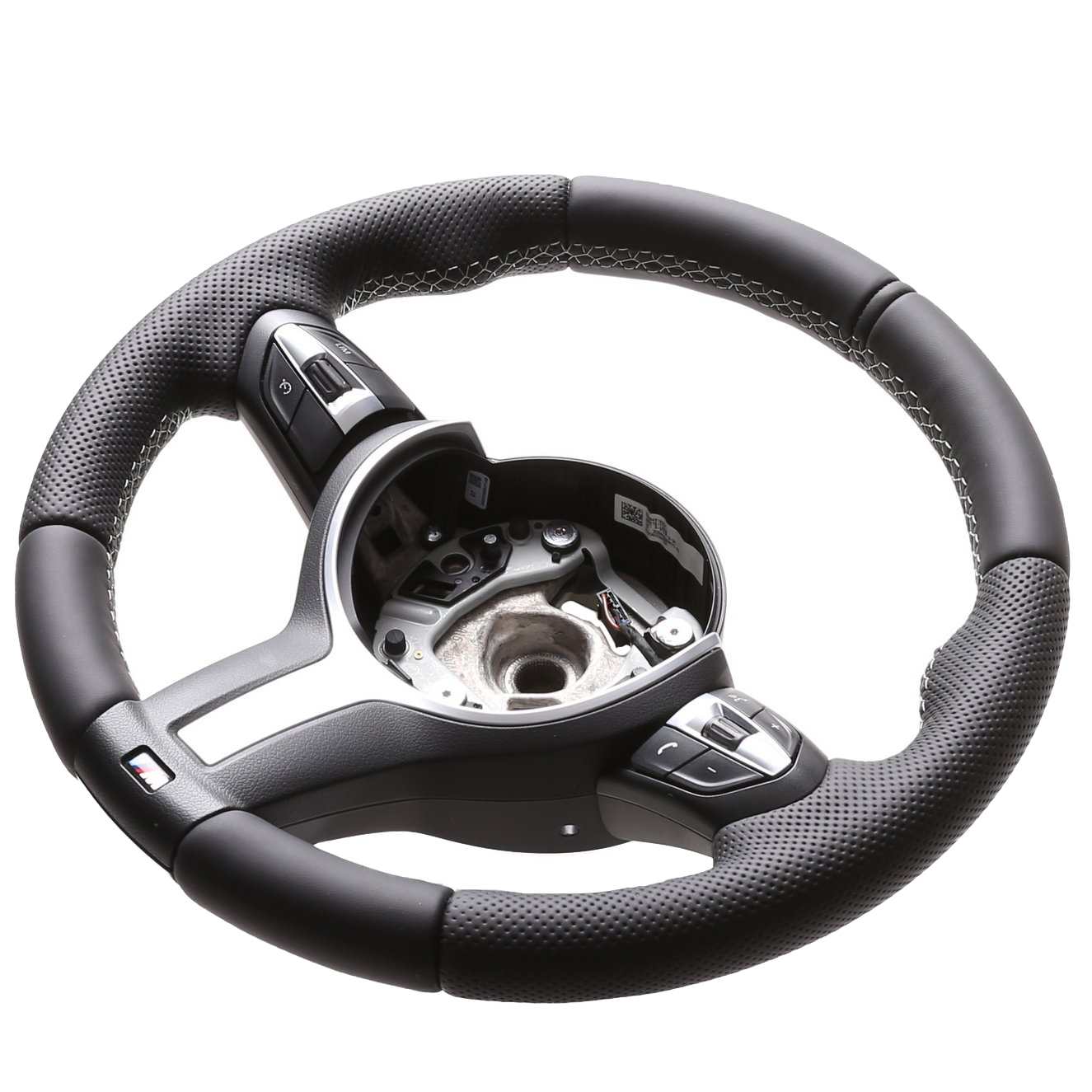 BMW Lenkrad F01 F02 F07 F10 F11 F12 F13 Kombibezug 12 Uhr Markierung schwarz Naht silber