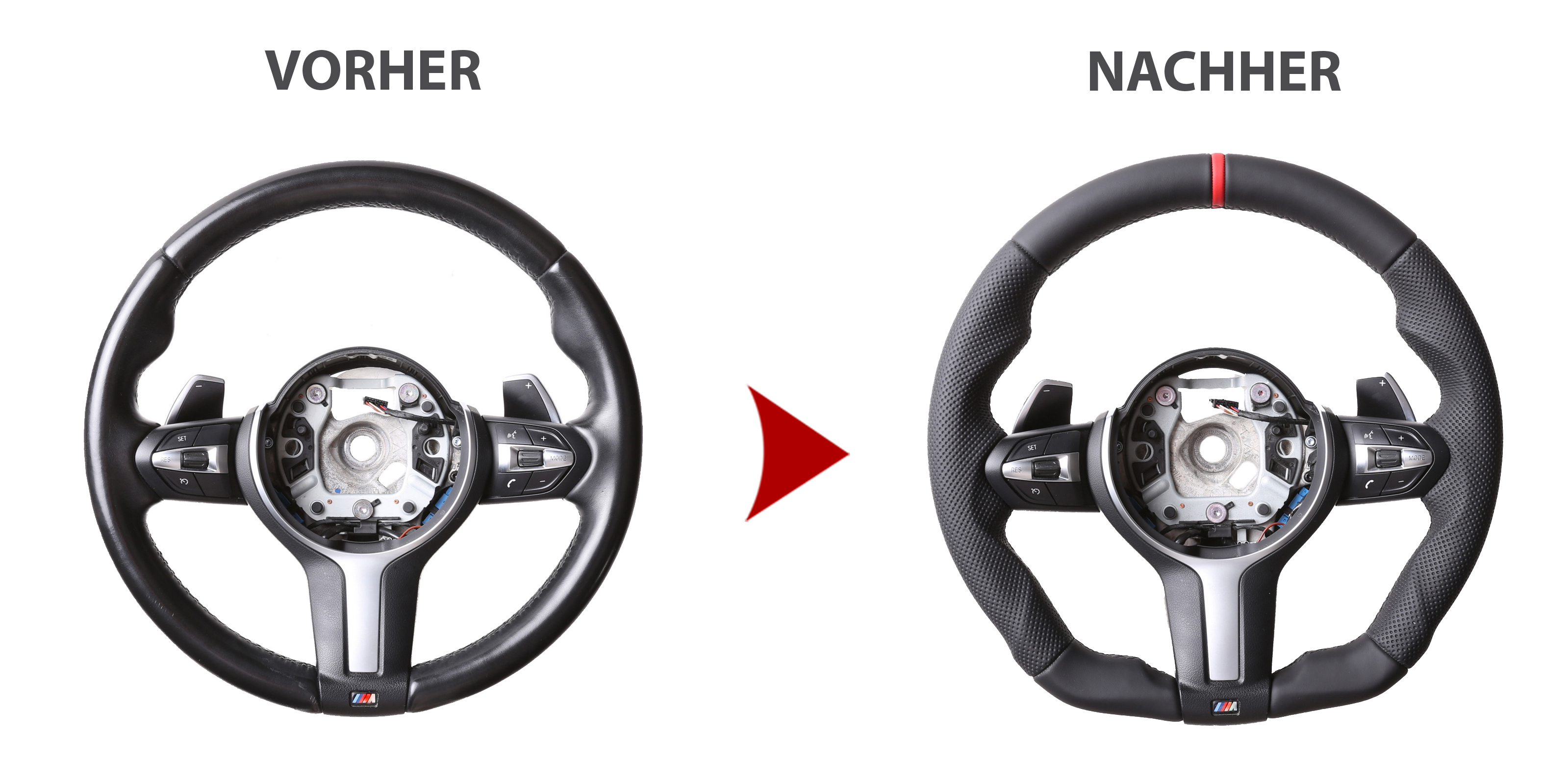 Produktinformationen "BMW Lenkrad F15 F20 F21 F22 F30 F34 GT F32 F33 F36 Abgeflacht Kombibezug 12Uhr Markierung rot"