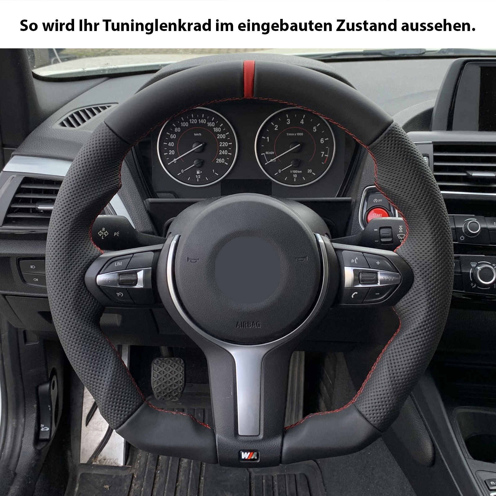 BMW Lenkrad F15 F20 F21 F22 F30 F34 GT F32 F33 F36 Abgeflacht Kombibezug 12Uhr Markierung rot