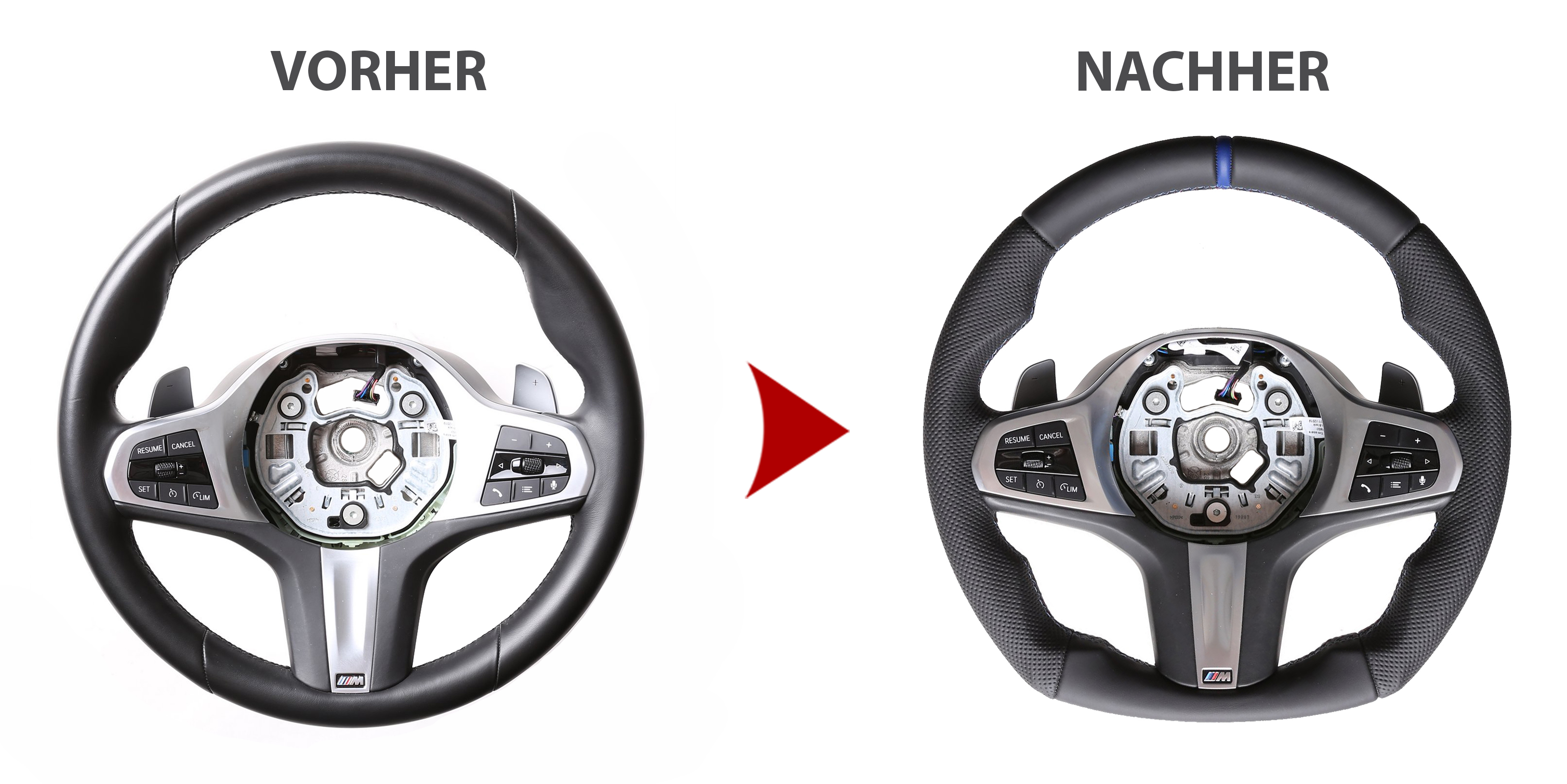 Des Weiteren bieten wir auch den Neubezug Ihres Lenkrades nach Ihren individuellen Vorstellungen bei uns vor Ort an. Sollte es Ihr Lenkradmodell ausnahmsweise nicht in unserem Sortiment geben, dann können wir Ihnen Ihr Lenkrad ausbauen, innerhalb von 4-5 Stunden den Wunschbezug anfertigen und anschließend können Sie wieder nach fachgerechtem Einbau durch uns ohne lange Versandwartezeiten und teure Werkstattbesuche mit Ihrem neu bezogenen Lederlenkrad nach Hause fahren!