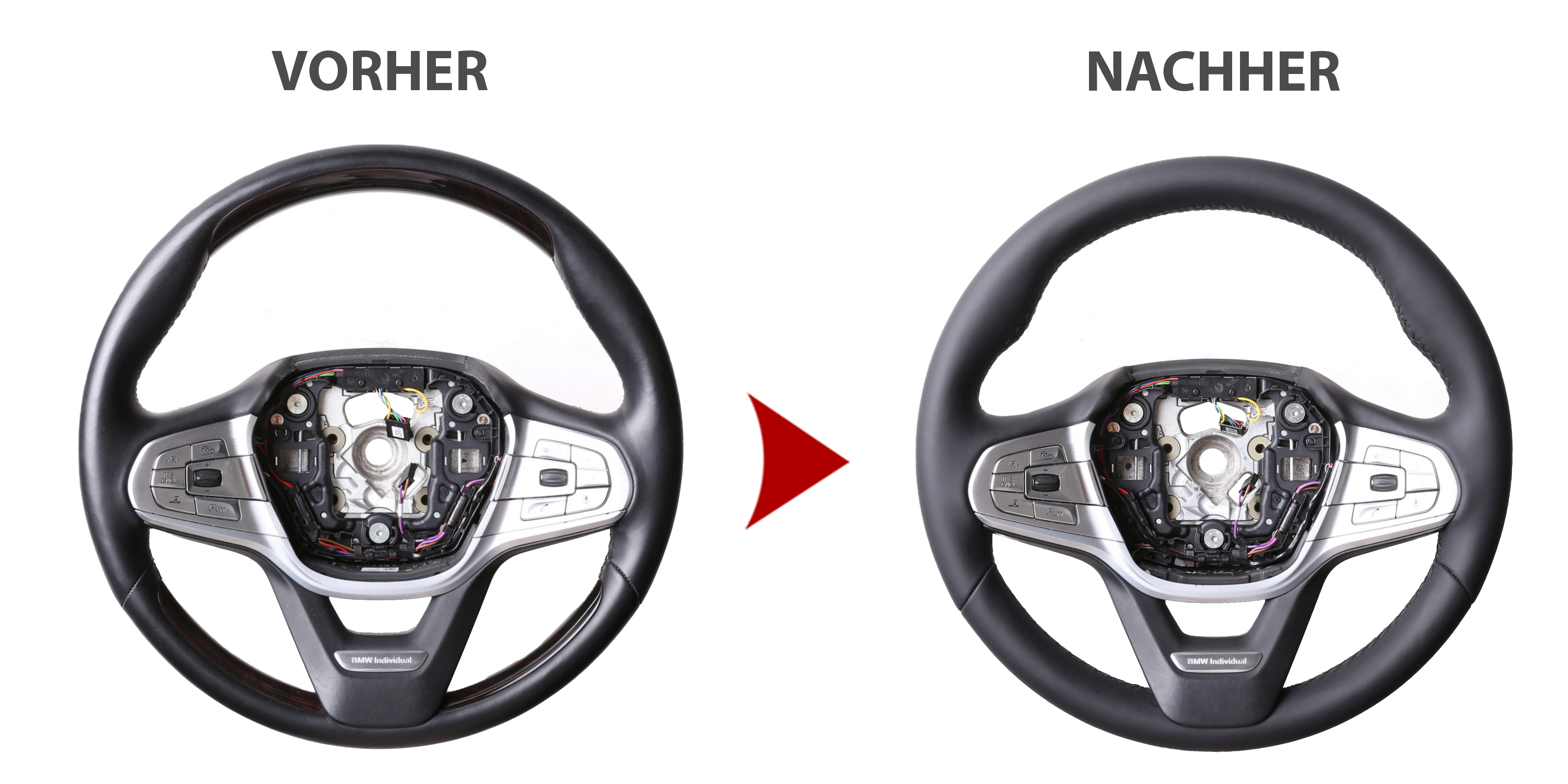 Des Weiteren bieten wir auch den Neubezug Ihres Lenkrades nach Ihren individuellen Vorstellungen bei uns vor Ort an. Sollte es Ihr Lenkradmodell ausnahmsweise nicht in unserem Sortiment geben, dann können wir Ihnen Ihr Lenkrad ausbauen, innerhalb von 4-5 Stunden den Wunschbezug anfertigen und anschließend können Sie wieder nach fachgerechtem Einbau durch uns ohne lange Versandwartezeiten und teure Werkstattbesuche mit Ihrem neu bezogenen Lederlenkrad nach Hause fahren!