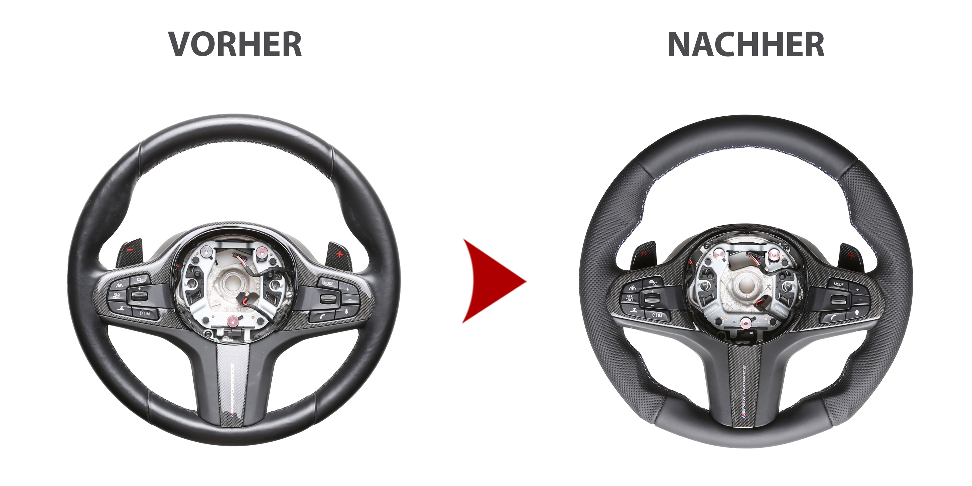 Des Weiteren bieten wir auch den Neubezug Ihres Lenkrades nach Ihren individuellen Vorstellungen bei uns vor Ort an. Sollte es Ihr Lenkradmodell ausnahmsweise nicht in unserem Sortiment geben, dann können wir Ihnen Ihr Lenkrad ausbauen, innerhalb von 4-5 Stunden den Wunschbezug anfertigen und anschließend können Sie wieder nach fachgerechtem Einbau durch uns ohne lange Versandwartezeiten und teure Werkstattbesuche mit Ihrem neu bezogenen Lederlenkrad nach Hause fahren!