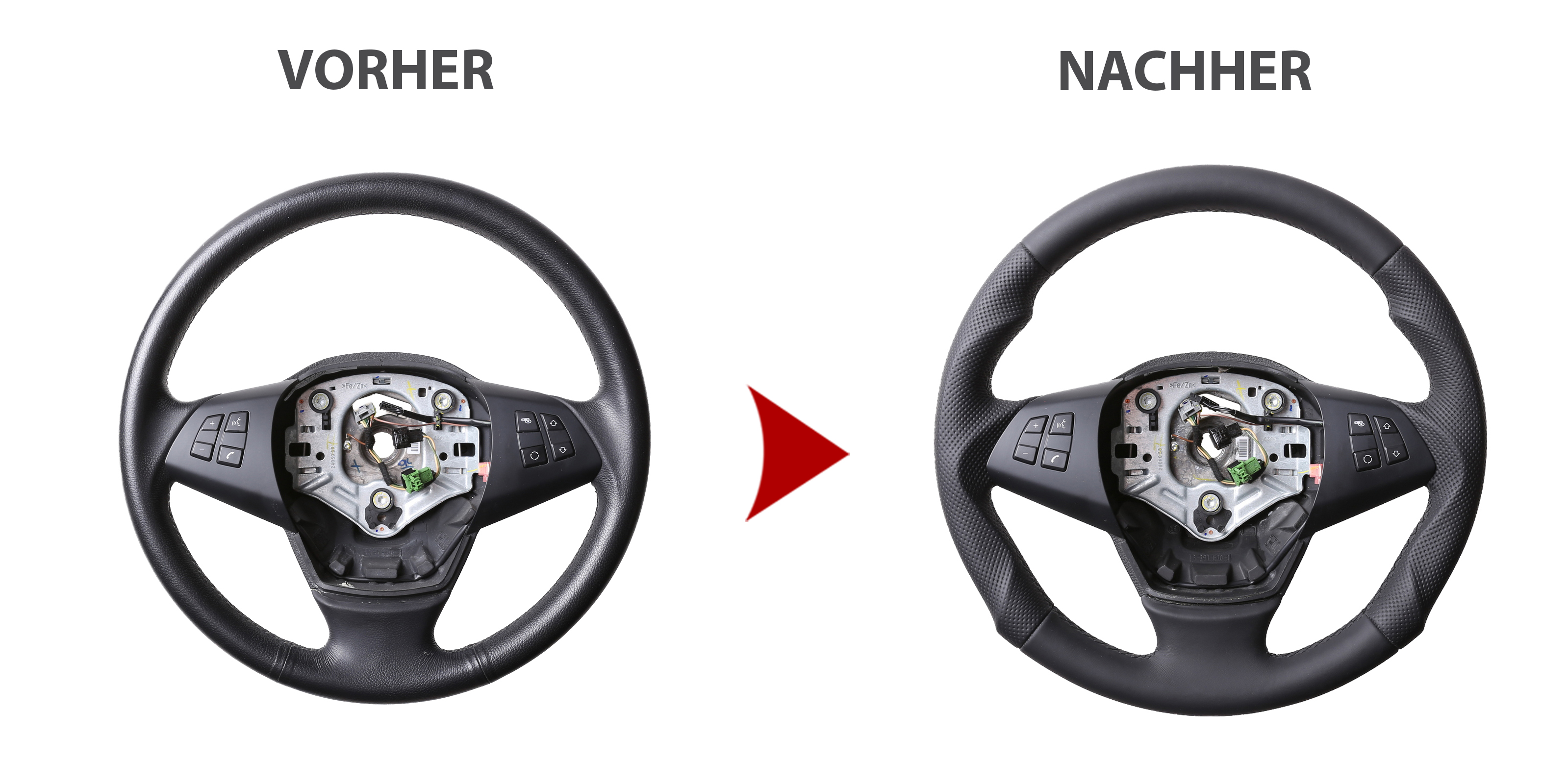 Der Austausch erfolgt ausschließlich gegen ein baugleiches Lenkradmodell. Alle Anbauteile wie Airbag, Multifunktionstasten, Blenden, Schaltwippen oder gar ein Spurhalteassistent übernehmen Sie problemlos von Ihrem Lenkrad. Diese sind nicht im Lieferumfang enthalten.