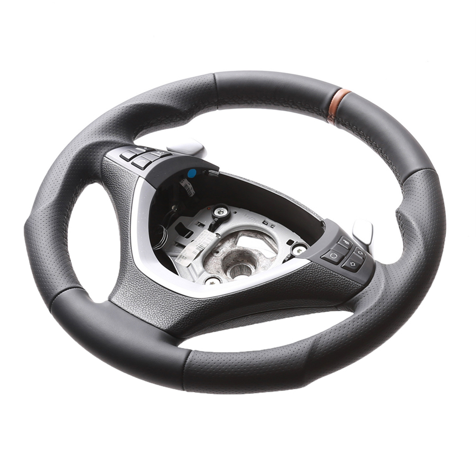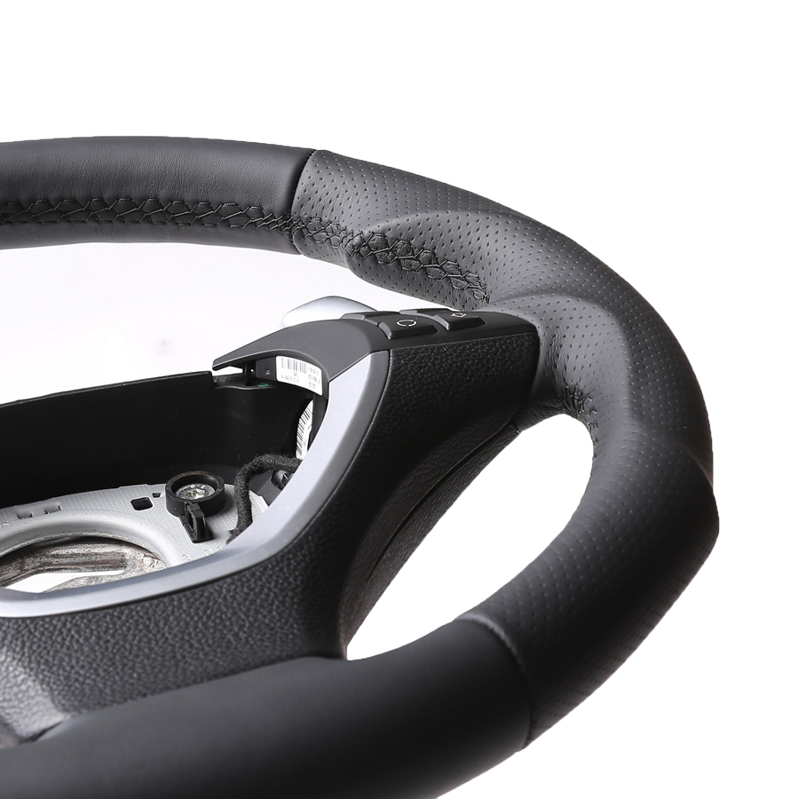 Originalfarbe schwarz, ein Kombibezug aus BMW Nappa und perforiertem Leder, Naht schwarz, 12 Uhr Markierung braun