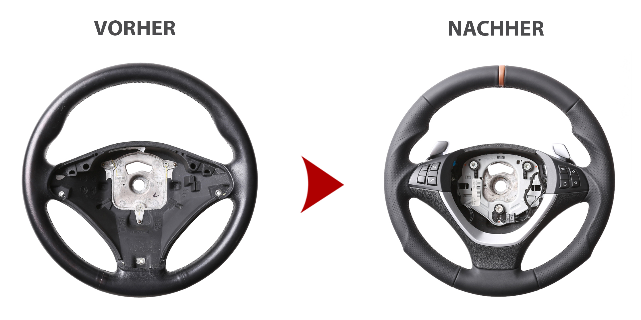 Des Weiteren bieten wir auch den Neubezug Ihres Lenkrades nach Ihren individuellen Vorstellungen bei uns vor Ort an. Sollte es Ihr Lenkradmodell ausnahmsweise nicht in unserem Sortiment geben, dann können wir Ihnen Ihr Lenkrad ausbauen, innerhalb von 4-5 Stunden den Wunschbezug anfertigen und anschließend können Sie wieder nach fachgerechtem Einbau durch uns ohne lange Versandwartezeiten und teure Werkstattbesuche mit Ihrem neu bezogenen Lederlenkrad nach Hause fahren!