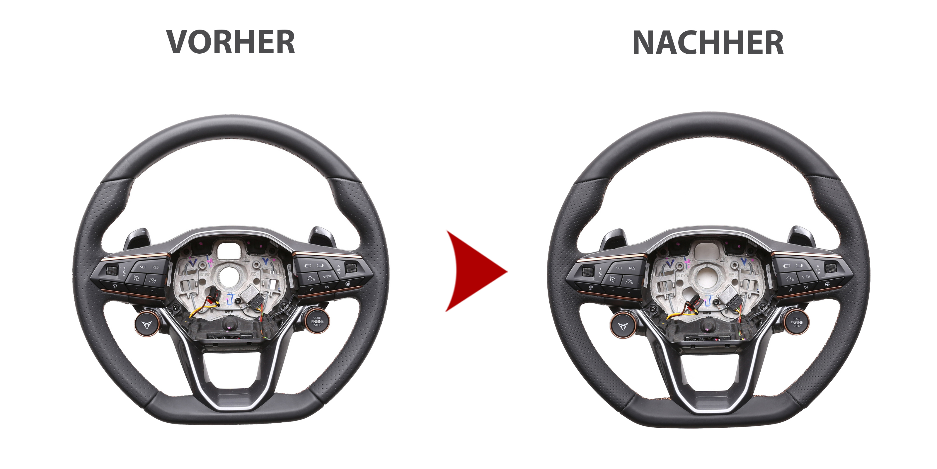 Produktinformationen "Cupra Lenkrad Ateca Born Formentor Leon Kombibezug Naht braun"