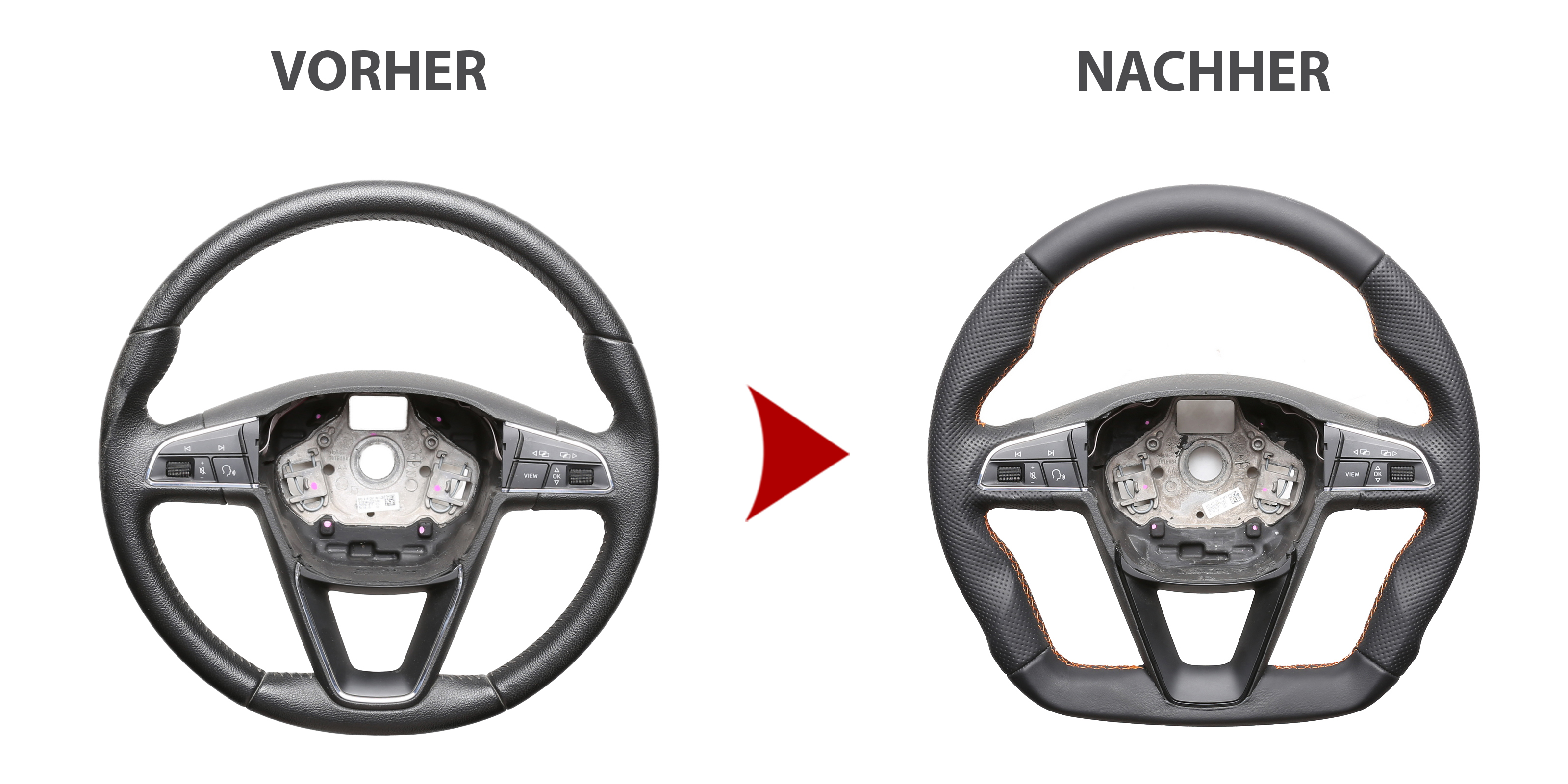 Produktinformationen "Cupra Lenkrad Ateca Leon Formentor Abgeflacht Kombibezug Naht orange"