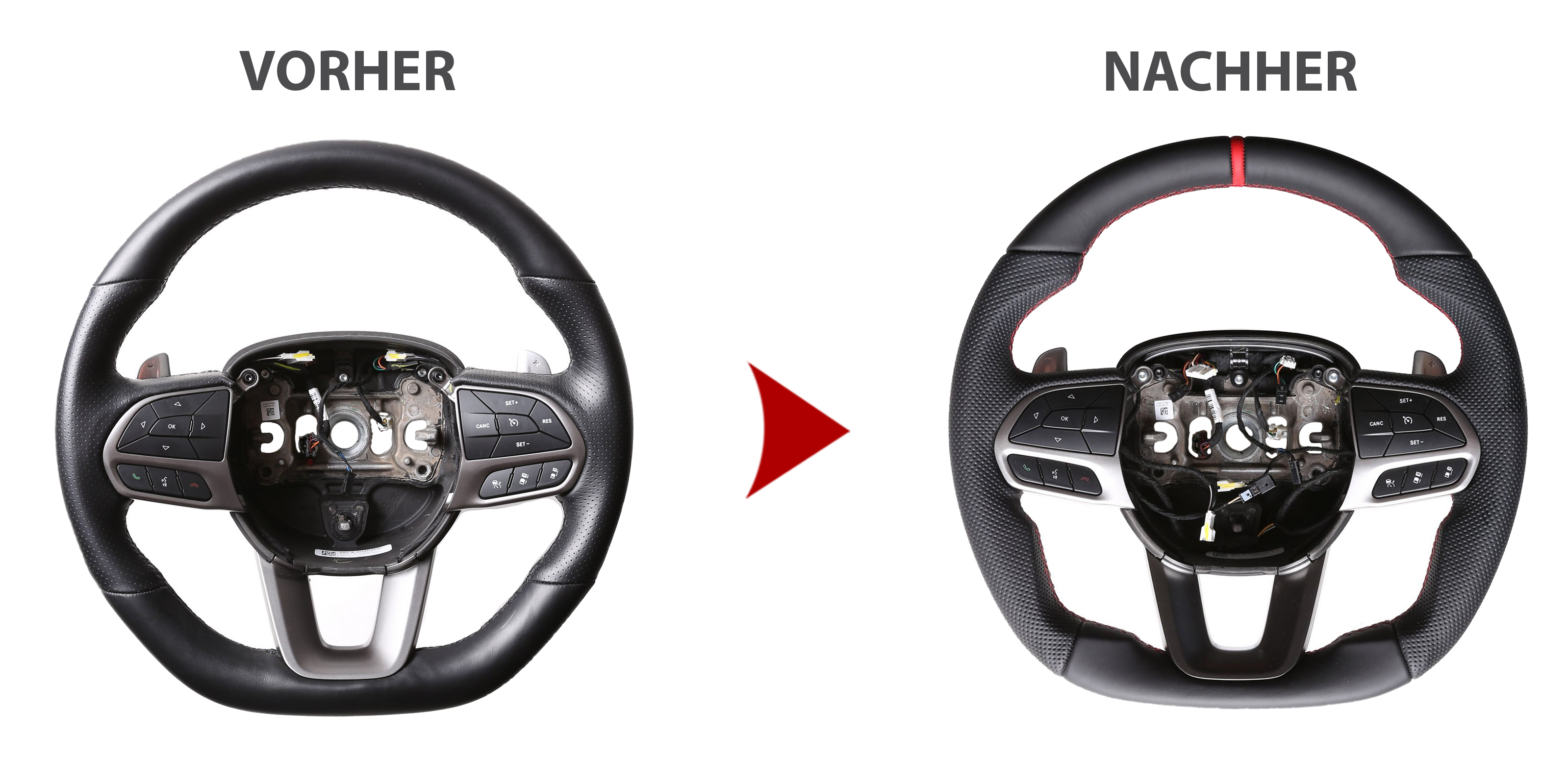 Dodge Lenkrad Challenger Charger Durango Abgeflacht NEU Kombibezug 12 Uhr Markierung rot Naht rot