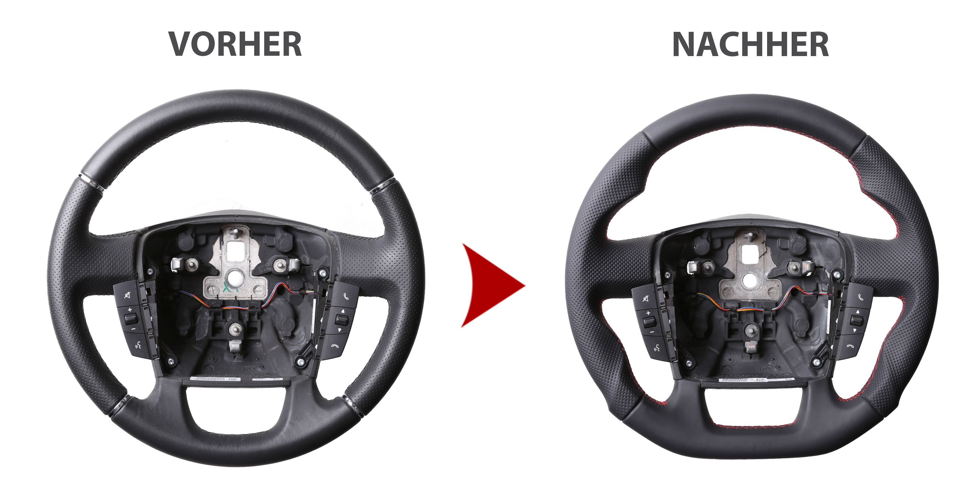Abgeflachtes Tuninglenkrad mit Ergonomischen Griffen für maximale Kontrolle. Griffumfang dicker als das Original Lenkrad.