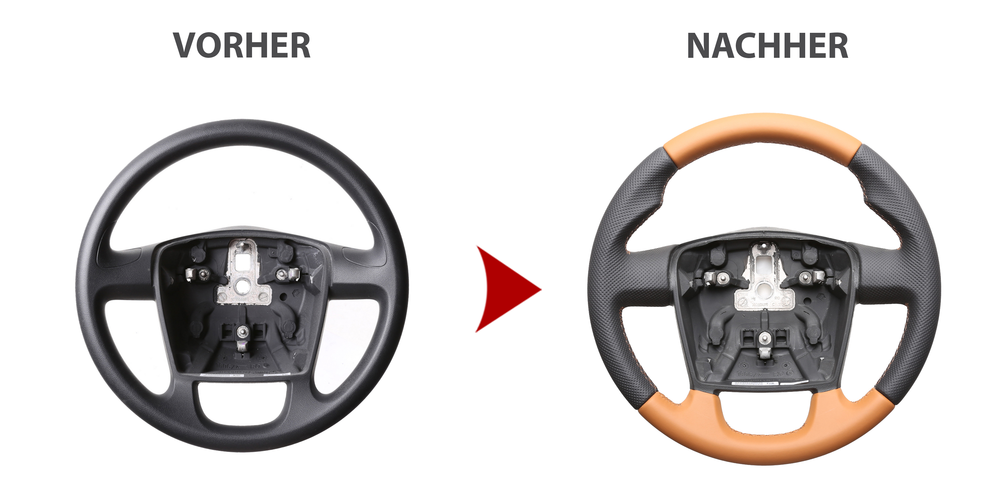 Griffumfang dicker als das Original Lenkrad, mit Daumenauflagen.
