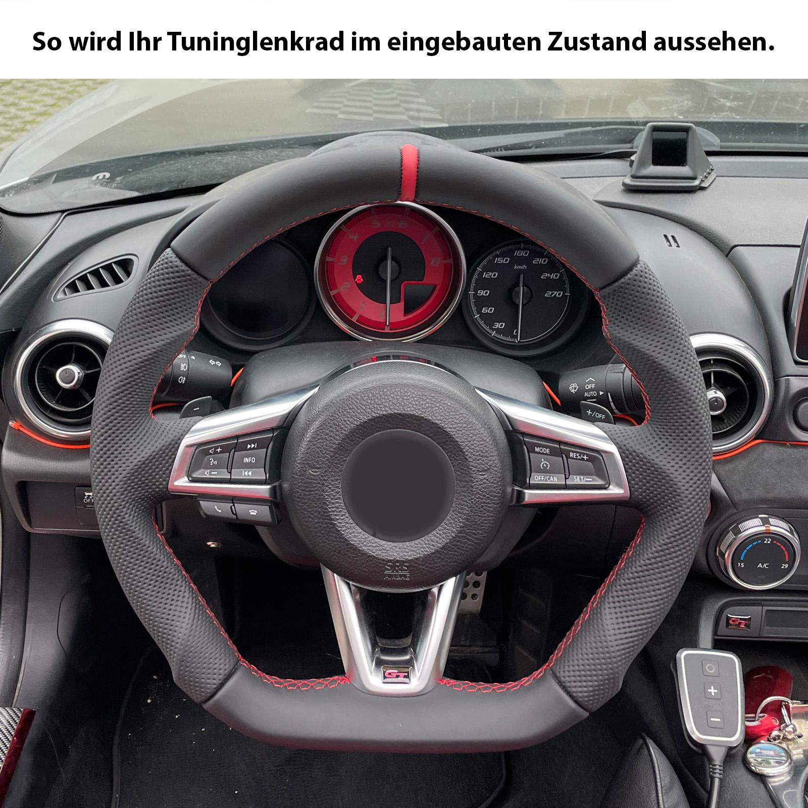 Abgeflachtes Tuninglenkrad mit ergonomischen Griffen für maximale Kontrolle. Griffumfang dicker als das Original Lenkrad