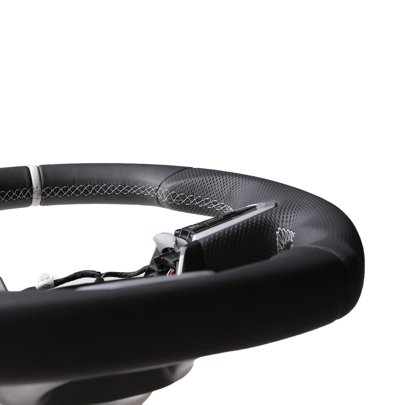Originalfarbe schwarz, ein Kombibezug aus Nappa und perforiertem Leder, 12 Uhr Markierung silber, Naht silber