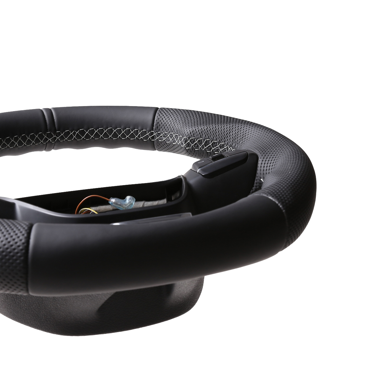 Abgeflachtes Tuninglenkrad mit ergonomischen Griffen für maximale Kontrolle. Griffumfang dicker als das Original-Lenkrad.