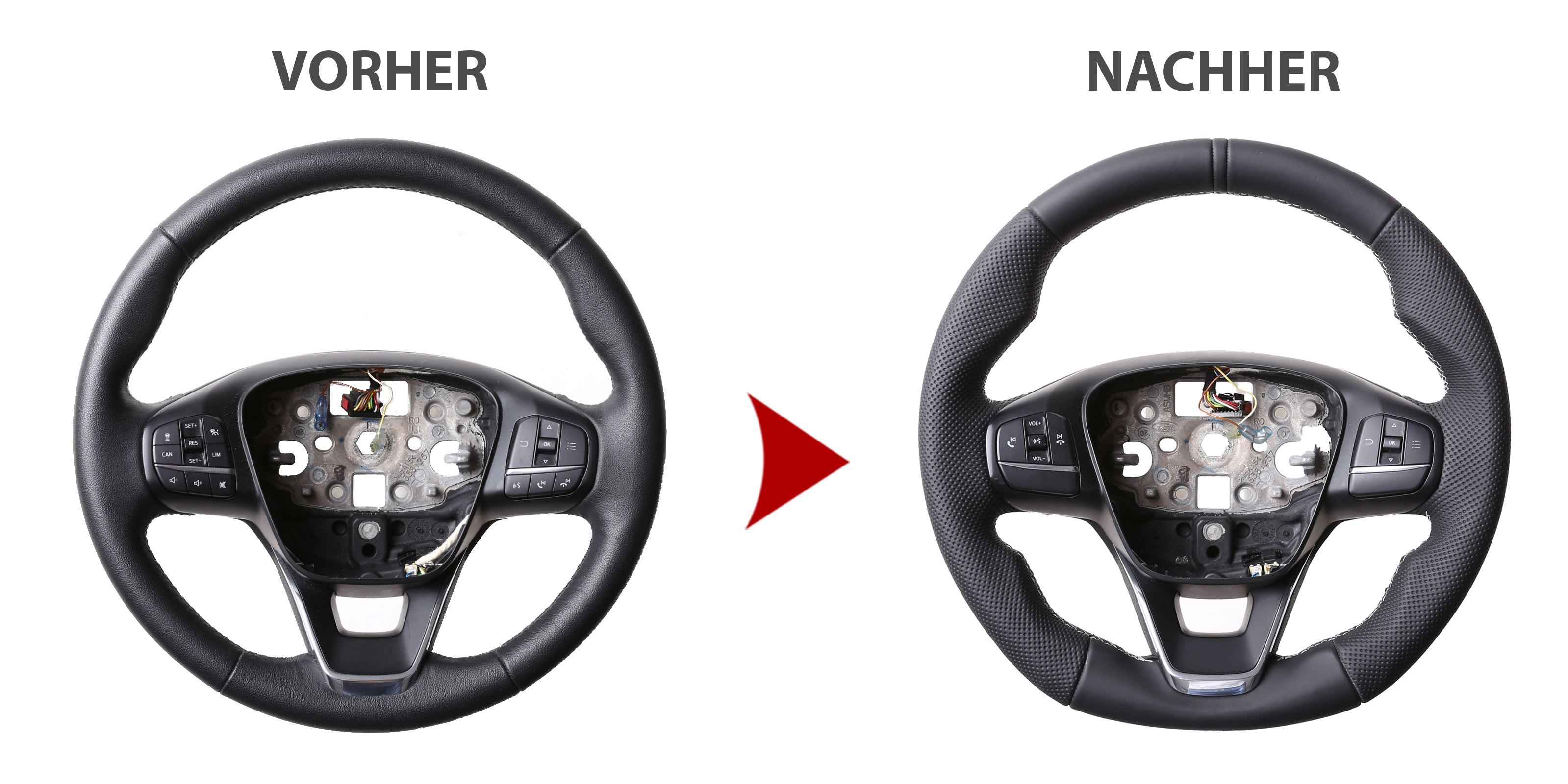 Der Austausch erfolgt ausschließlich gegen ein baugleiches Lenkradmodell. Alle Anbauteile wie Airbag, Multifunktionstasten, Blenden, Schaltwippen oder gar ein Spurhalteassistent übernehmen Sie problemlos von Ihrem Lenkrad. Diese sind nicht im Lieferumfang enthalten.