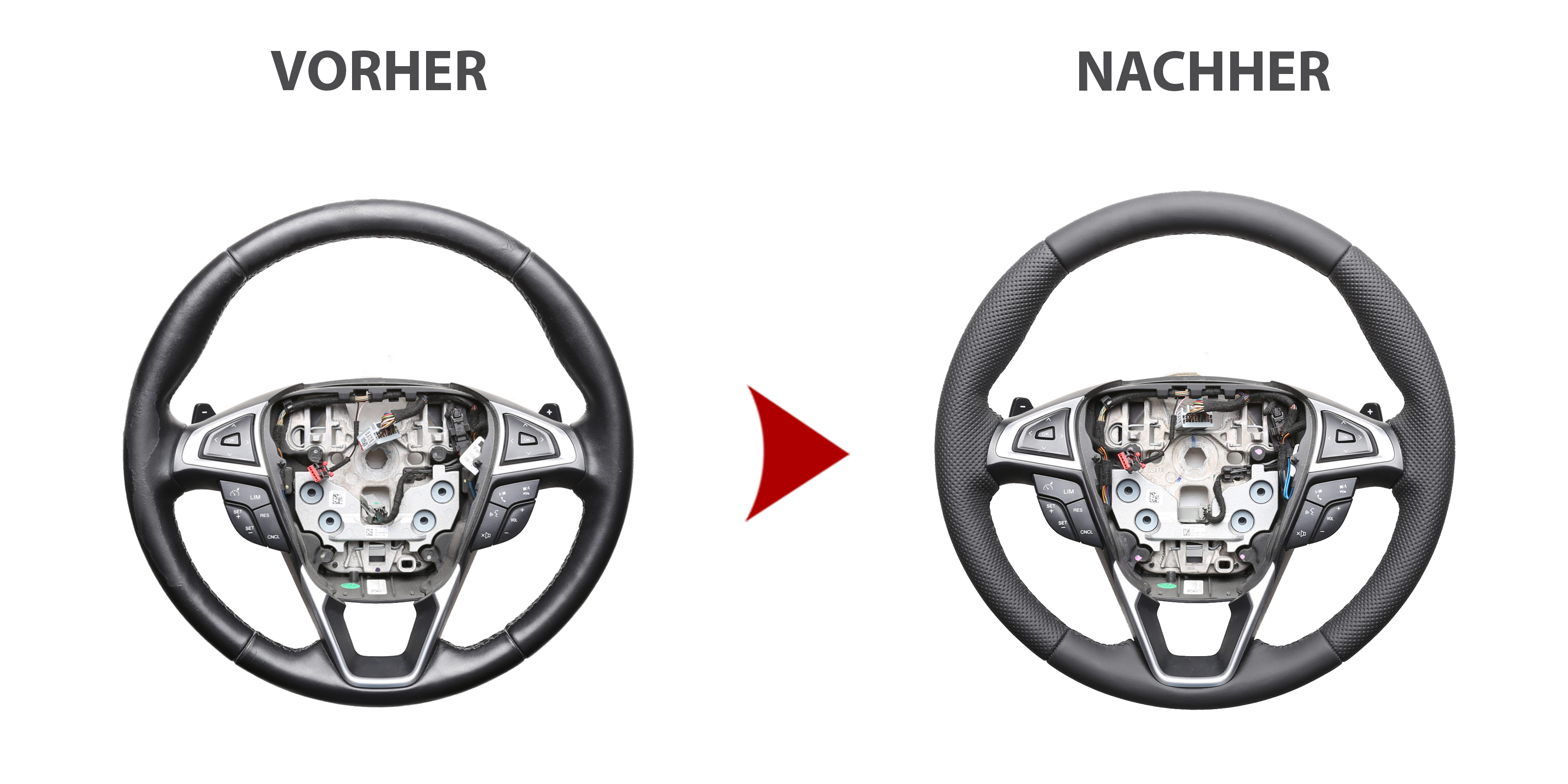 Der Austausch erfolgt ausschließlich gegen ein baugleiches Lenkradmodell. Alle Anbauteile wie Airbag, Multifunktionstasten, Blenden, Schaltwippen oder gar ein Spurhalteassistent übernehmen Sie problemlos von Ihrem Lenkrad. Diese sind nicht im Lieferumfang enthalten.