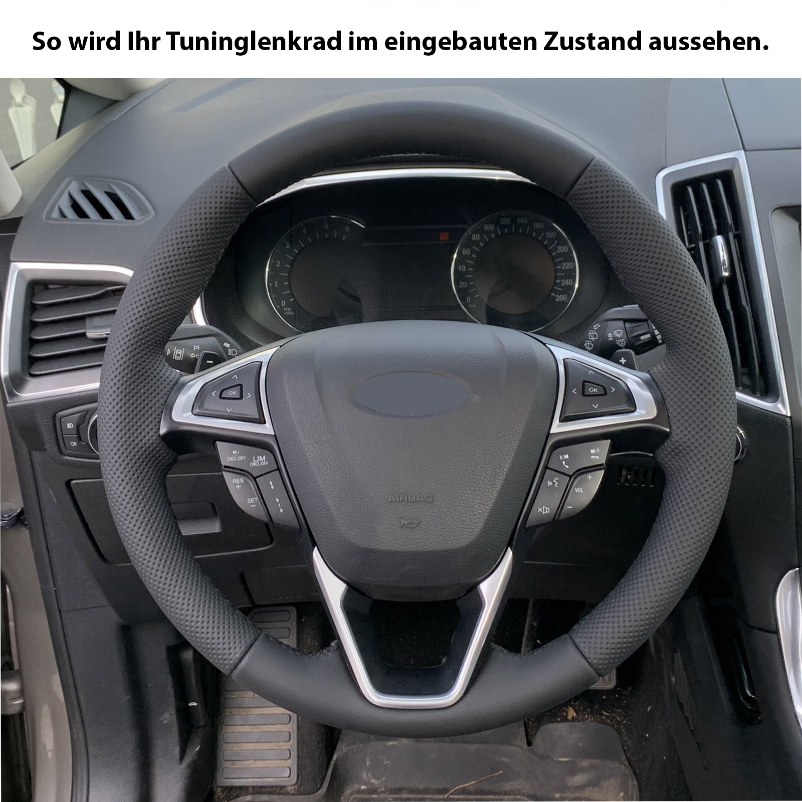 Produktinformationen "Ford Lenkrad Mondeo Fusion Edge Fiesta Galaxy S-Max Kombibezug Naht schwarz"