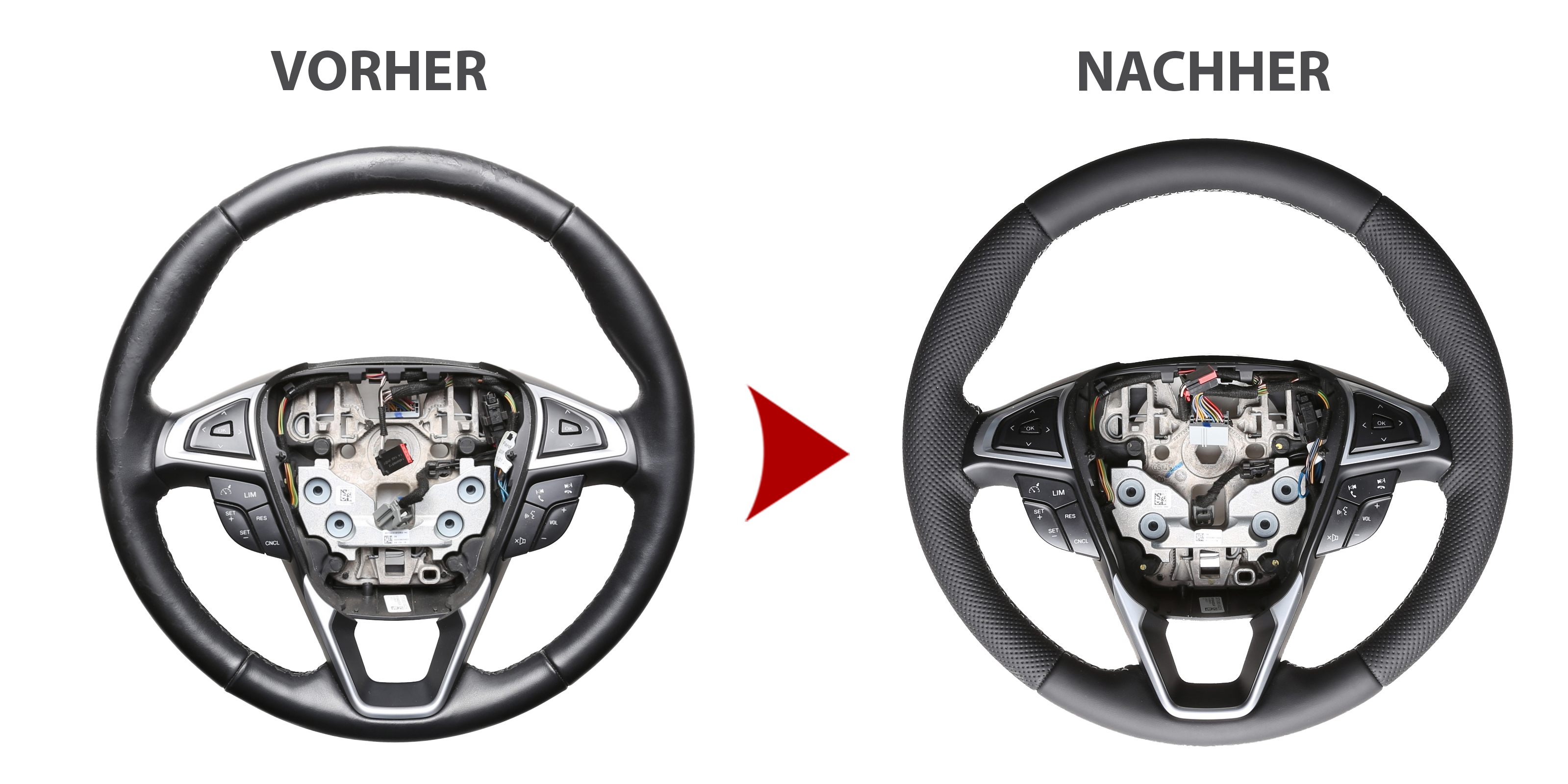 Der Austausch erfolgt ausschließlich gegen ein baugleiches Lenkradmodell. Alle Anbauteile wie Airbag, Multifunktionstasten, Blenden, Schaltwippen oder gar ein Spurhalteassistent übernehmen Sie problemlos von Ihrem Lenkrad. Diese sind nicht im Lieferumfang enthalten.